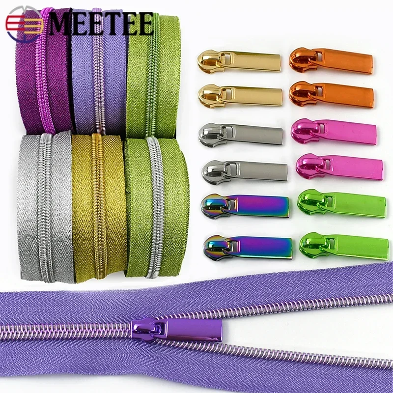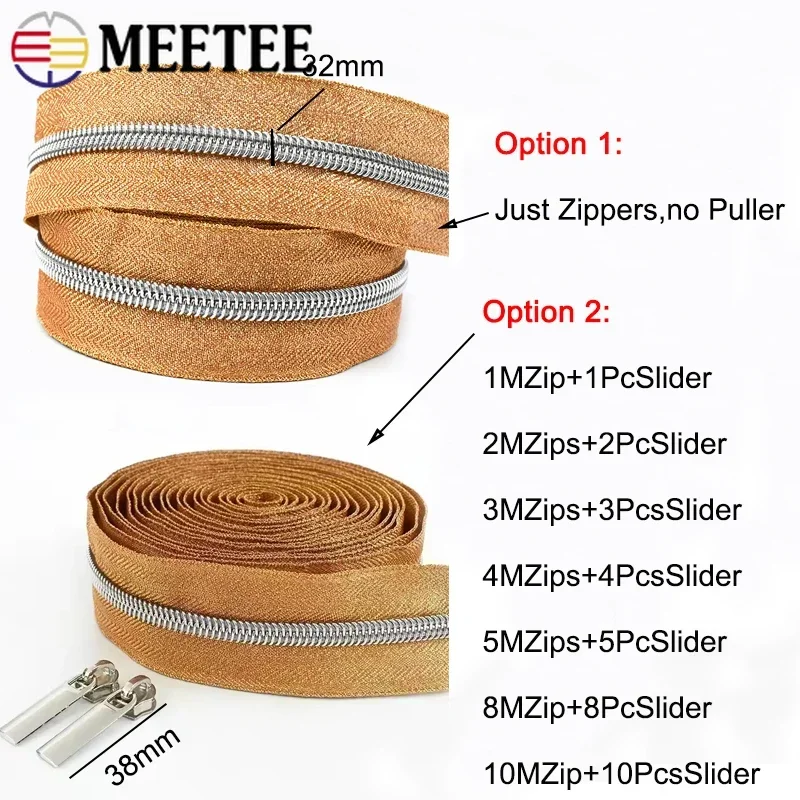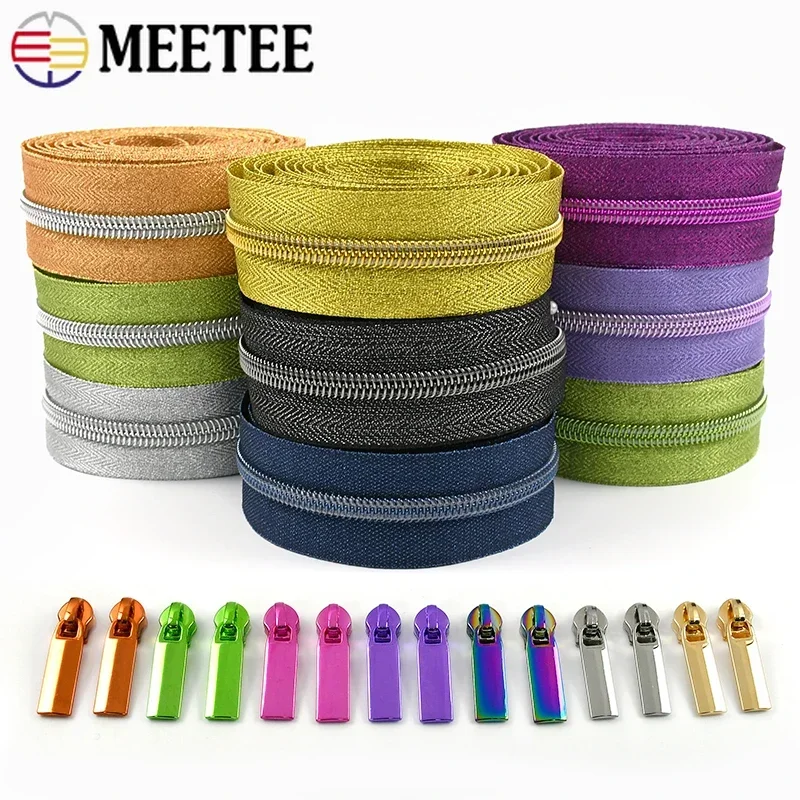 5M Nylon Zipper Tape with Zippers Slider for Bag Clothing Coil Zips DIY Sewing