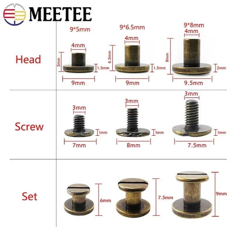 - Product: Meetee 5-8mm Flat Head Metal Screws Nail Bag Notebook Book Belt Binding Rivet Button Buckle DIY Hardware Accessories