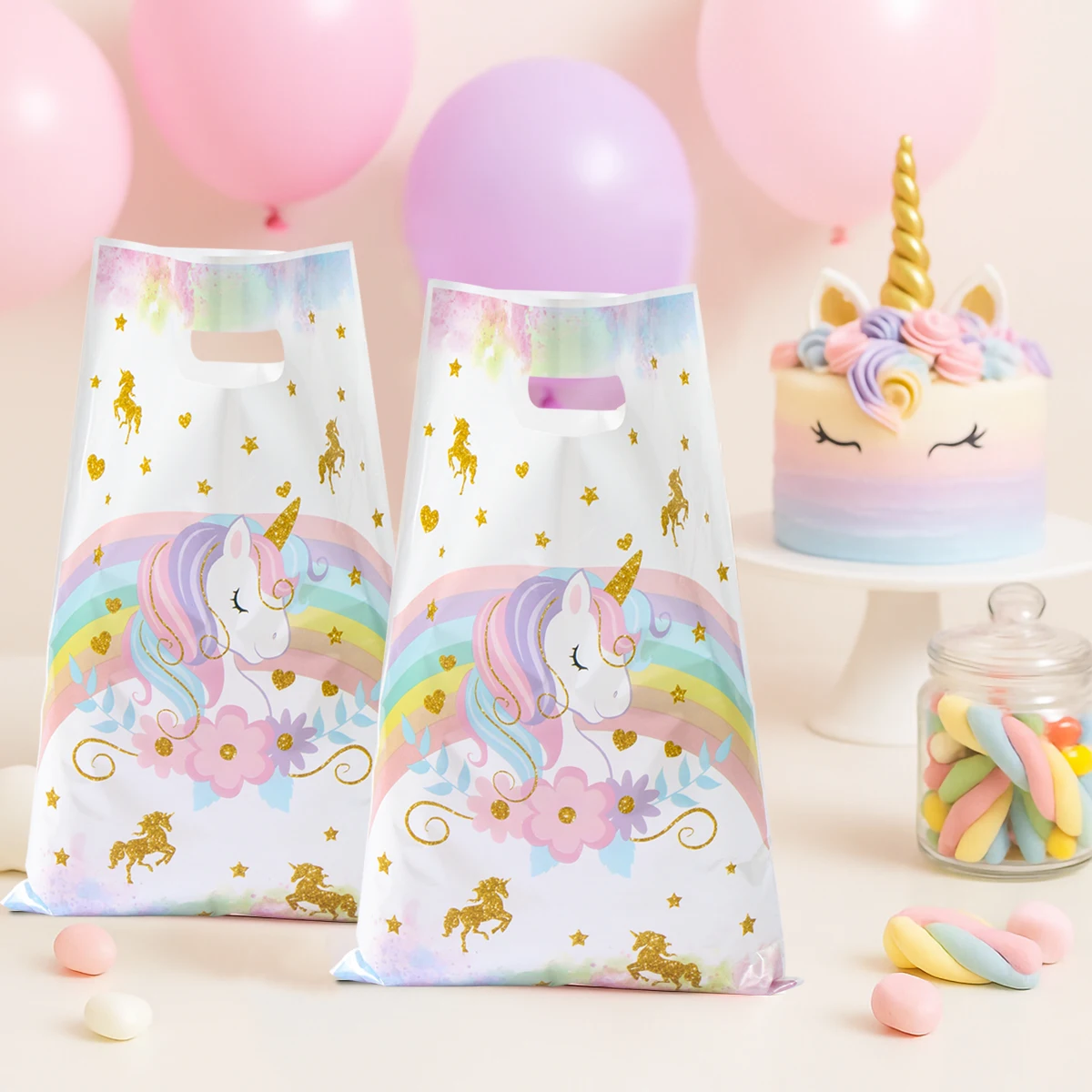 These delightful unicorn-themed candy bags are perfect for birthday parties, baby showers, and other festive occasions. They add a whimsical touch to your celebrations and are ideal for packing gifts or treats for kids. Each bag features a charming unicorn design that will surely delight children and guests alike.