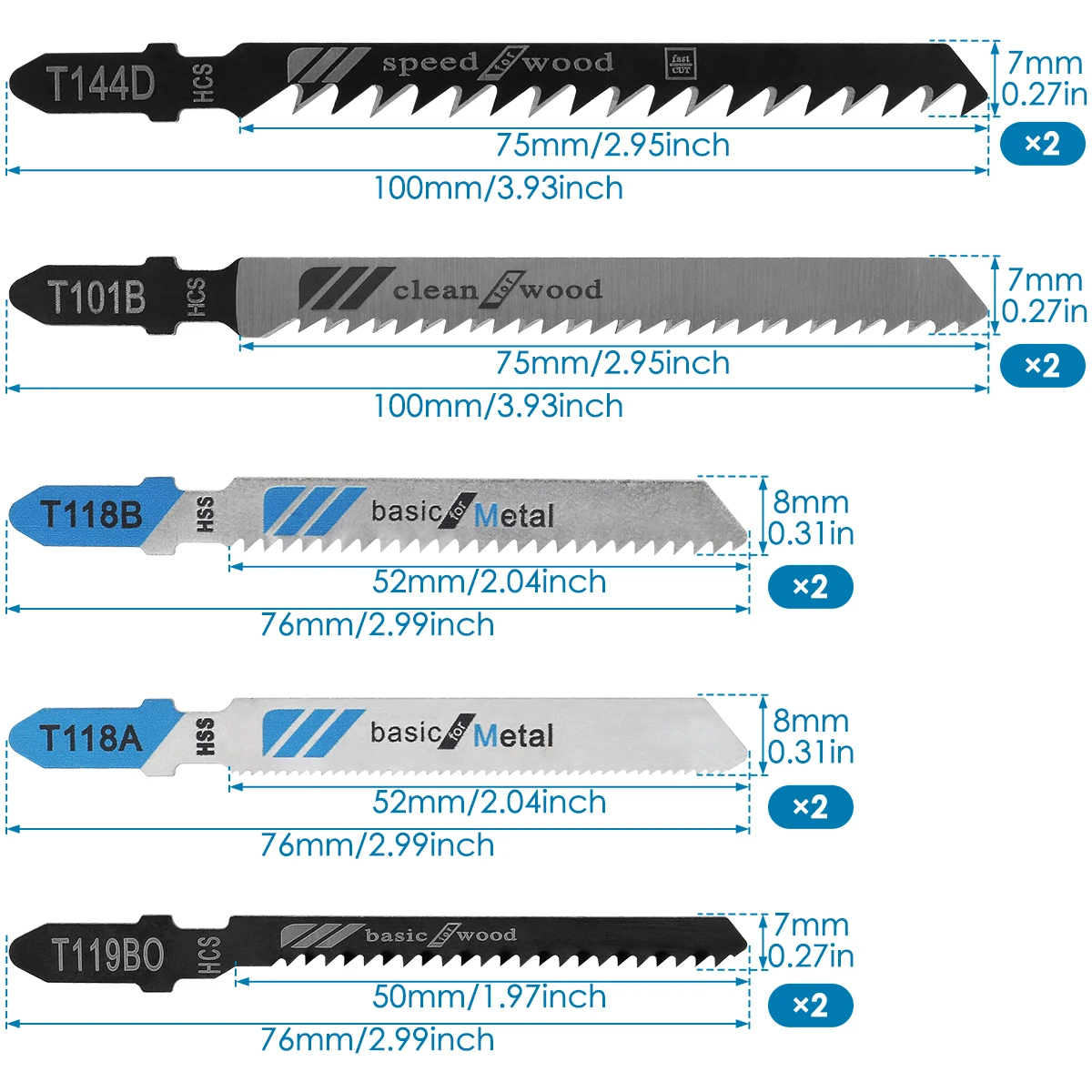 - 2 pcs of T118B Jigsaw Blades