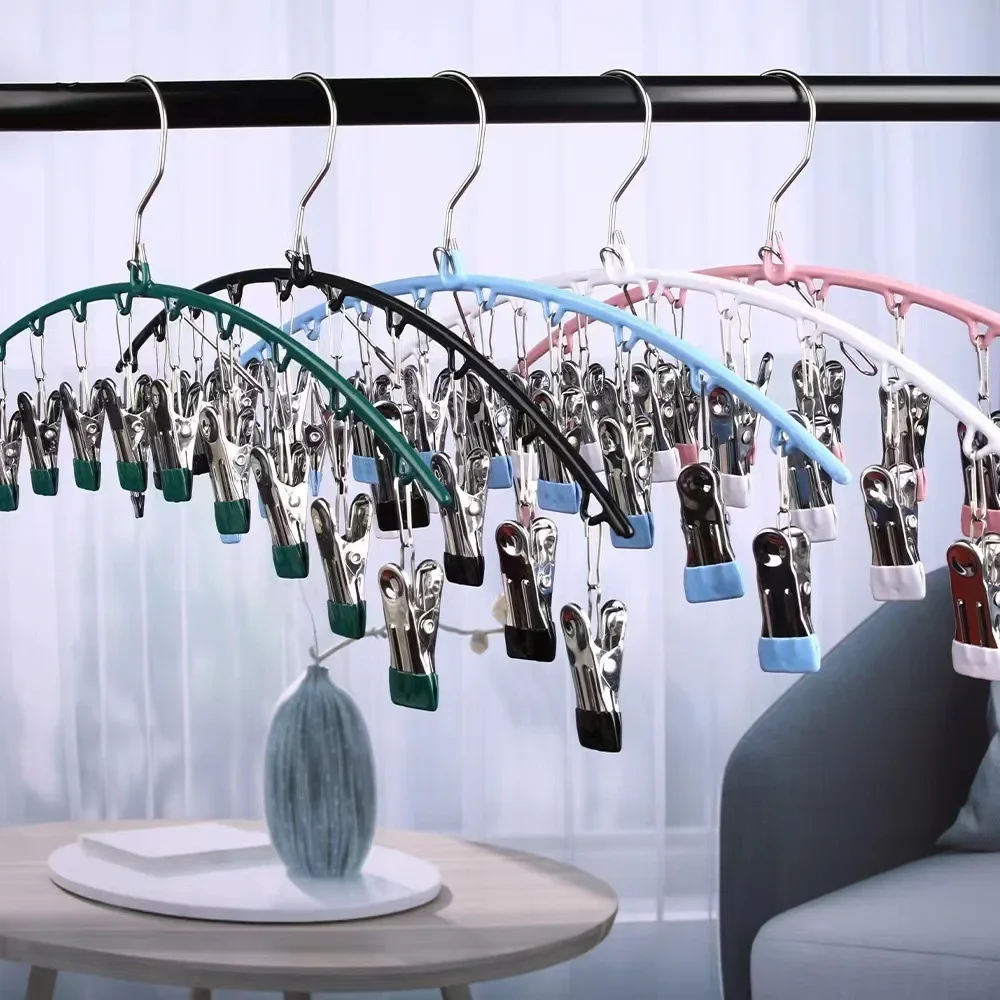 This 10 Clips Stainless Steel Sock Clip is a practical solution for drying your clothes efficiently. Designed with an arc shape, it saves space while providing a windproof and non-slip feature, making it ideal for various clothing items including socks, underwear, and towels.
