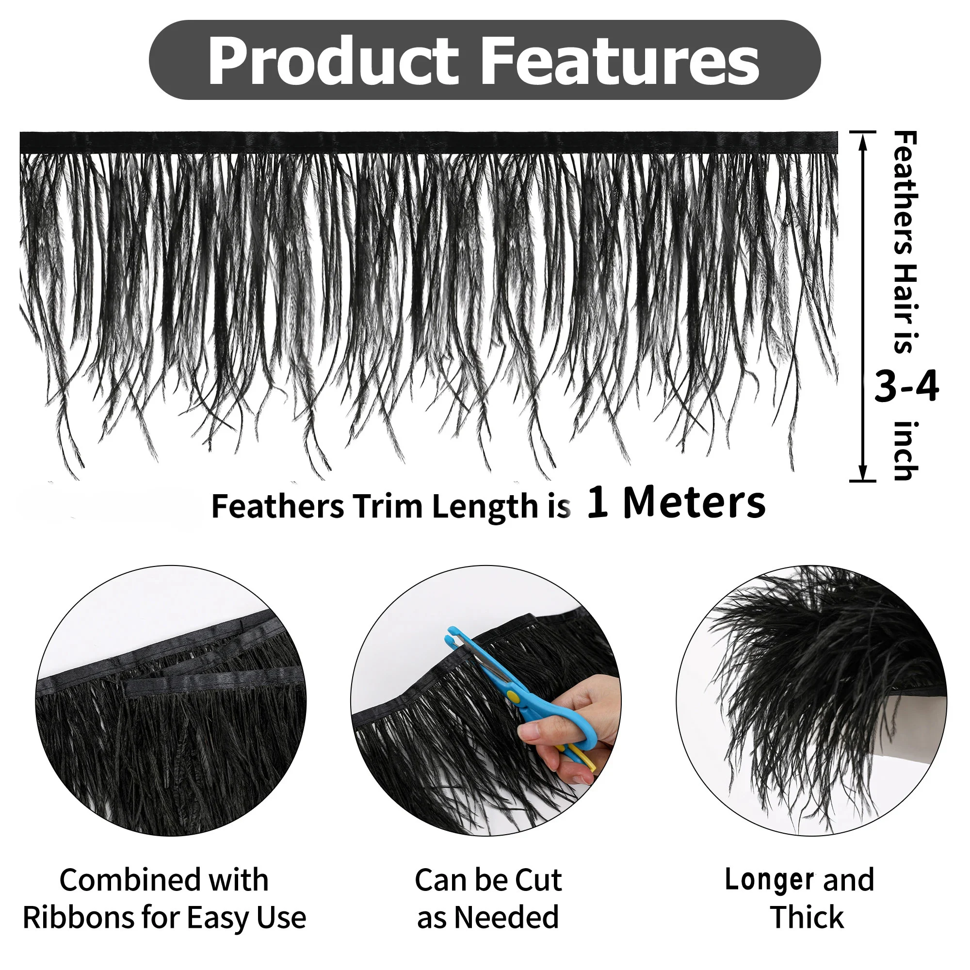 This 1 meter long natural ostrich feather trim is perfect for a variety of DIY projects, including wedding dresses, party decorations, and home decor. The feathers are ethically sourced and come in a range of natural and dyed colors, making them a versatile choice for any creative endeavor.