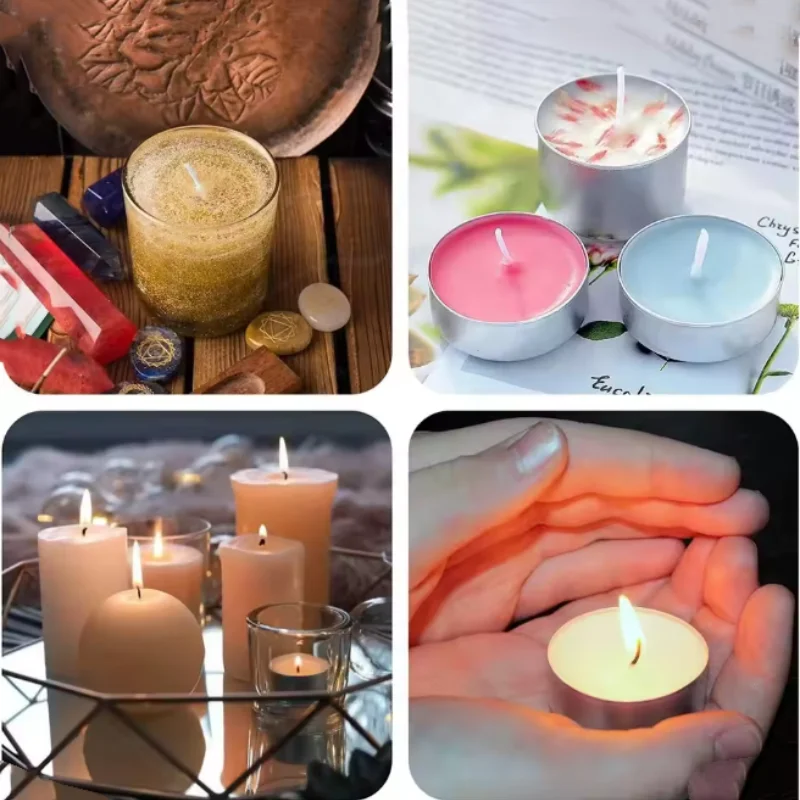 This candle making kit includes 100 pieces of cotton candle wicks, designed for creating your own candles. The wicks are suitable for various types of wax and are perfect for DIY candle projects.