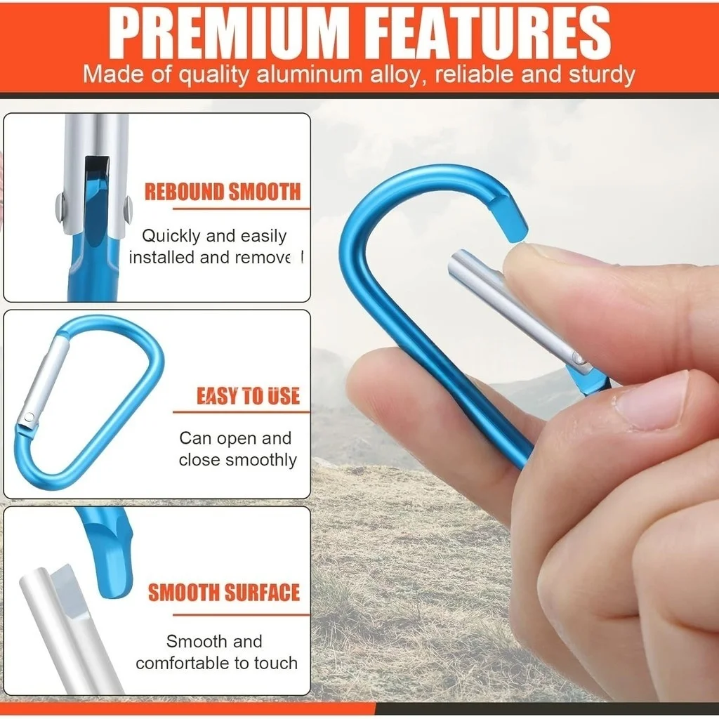 100Pcs Aluminum Alloy Carabiner Outdoor Spring Snap Clip Water Bottle Hooks