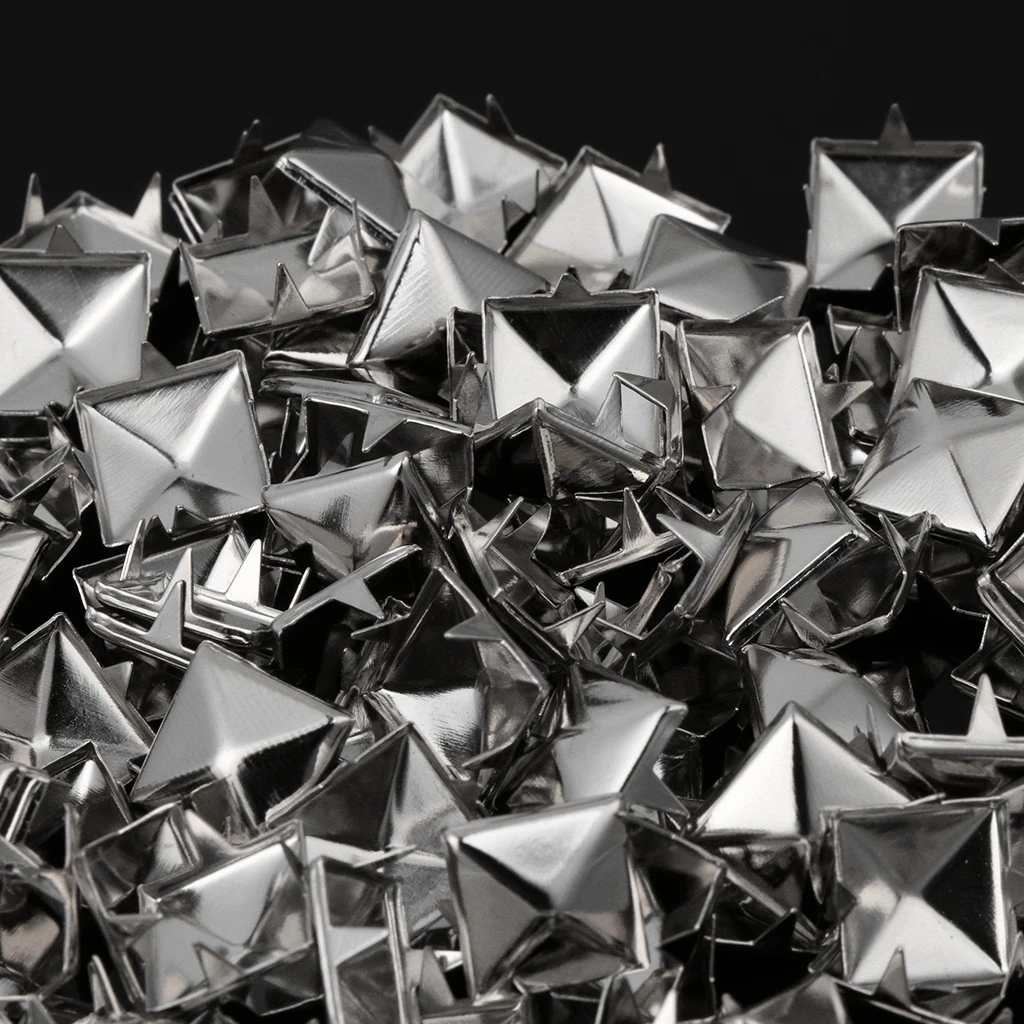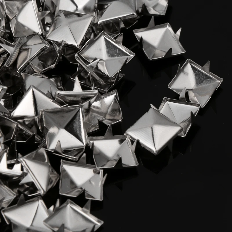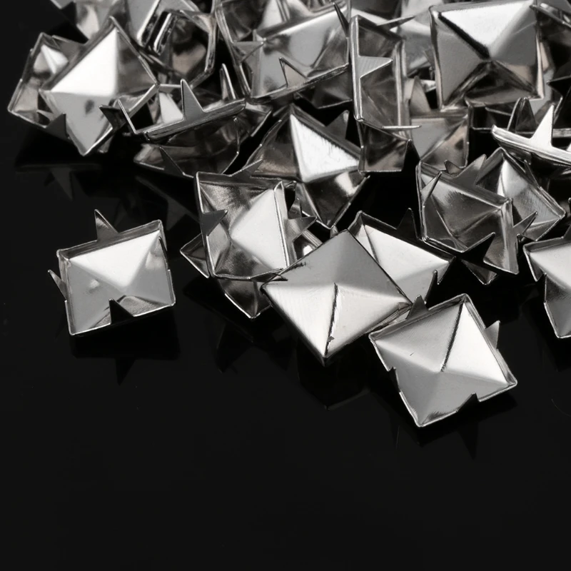 Enhance your DIY projects with these 100pcs Square Metal Studs. Perfect for adding a punk flair to your clothing, accessories, and more, these studs are versatile and easy to use for various applications.