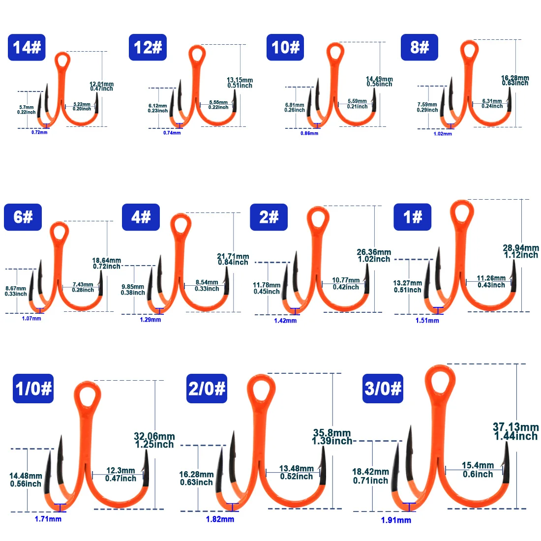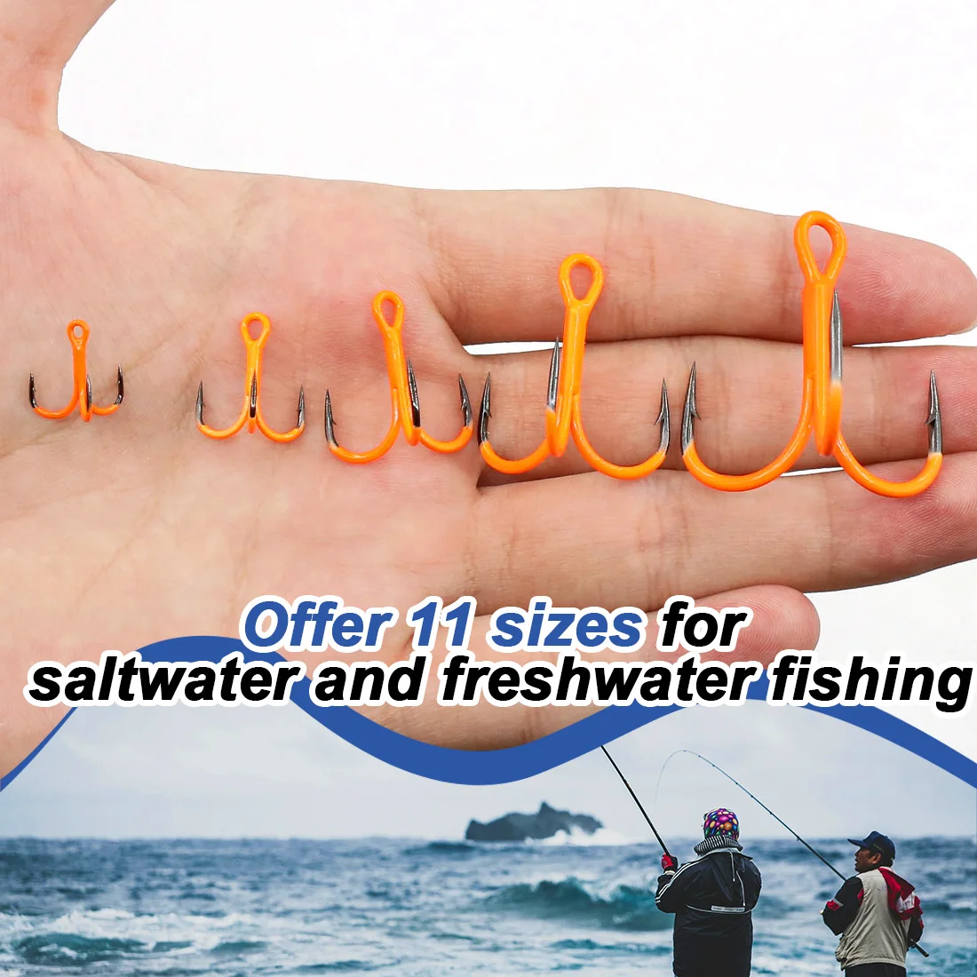 10Pcs Treble Hooks 2X Strong for Deep Freshwater Fishing Orange UV