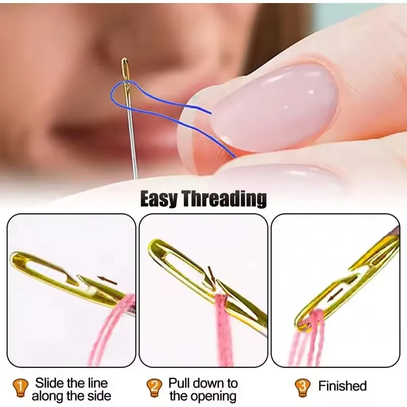 This set of blind needles is designed for easy threading and is perfect for various sewing projects, including DIY jewelry making. The needles feature a side hole that allows for effortless use, making them suitable for both beginners and experienced crafters.