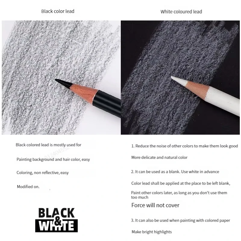 Black White Color Pencils Permanent Colored Drawing Pencil Oil-based Wooden