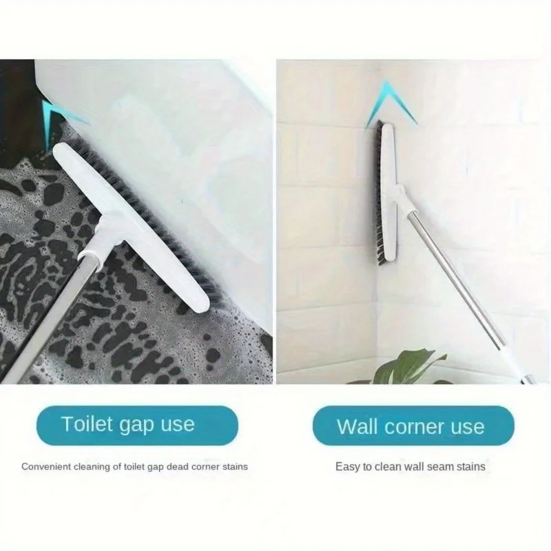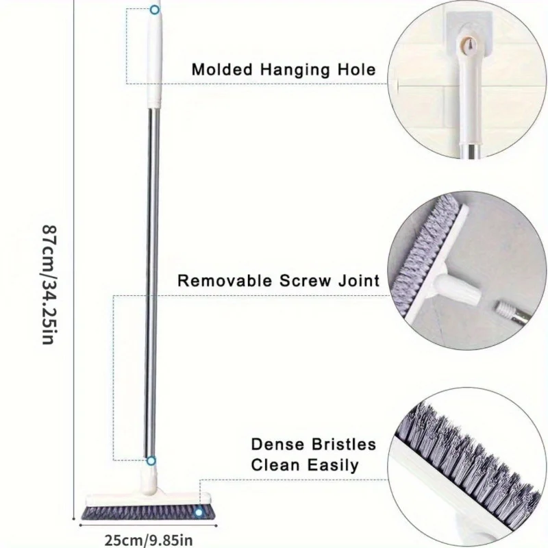 This bathroom floor brush is designed for effective cleaning in hotels and homes. It features a long handle and hard bristles that reach into corners and tight spaces, ensuring no area is left uncleaned.