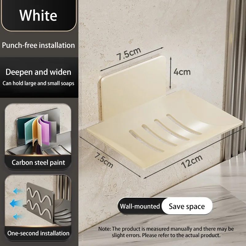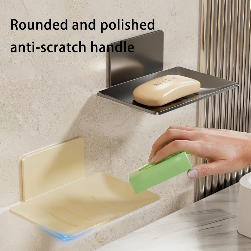 This wall-mounted soap holder is designed for modern bathrooms, featuring a sleek and stylish appearance. Its rounded edges and corners ensure safety while providing a practical solution for soap storage.