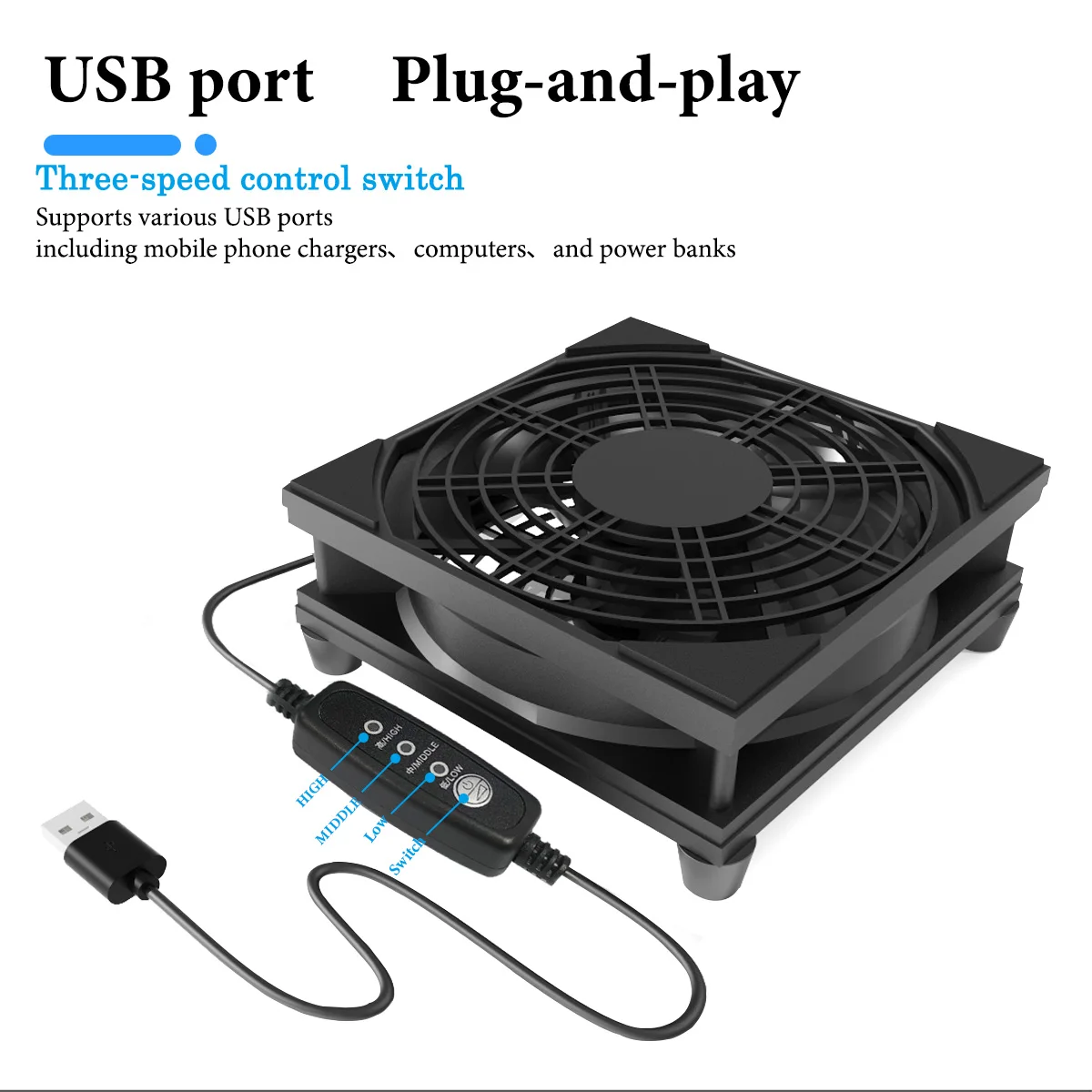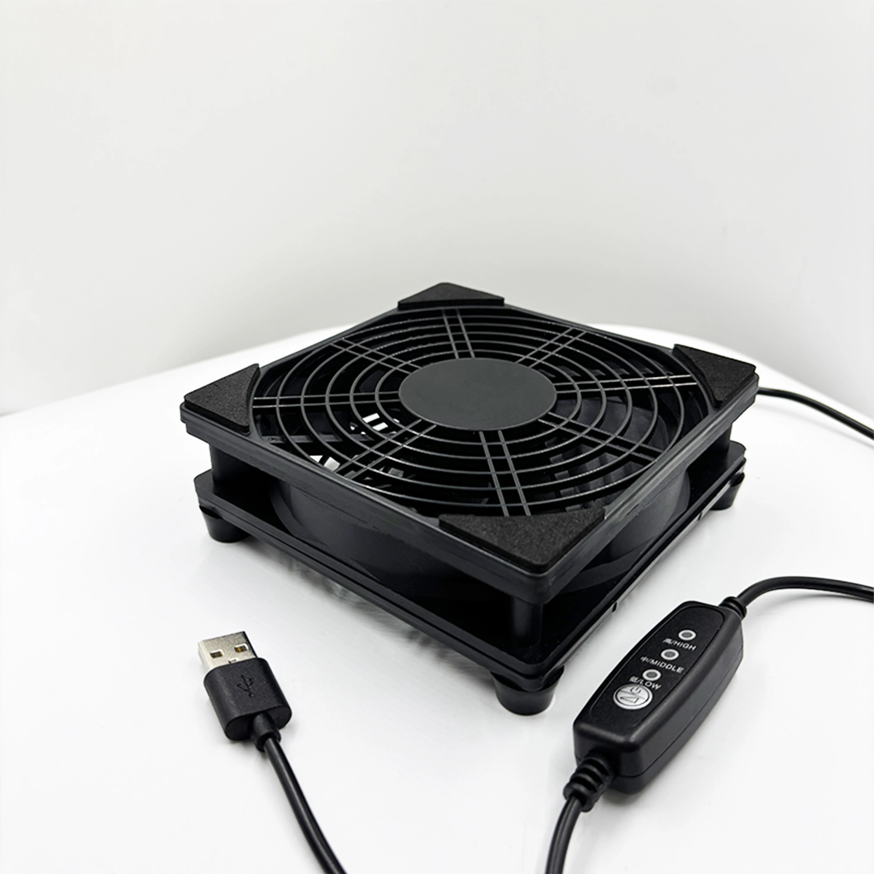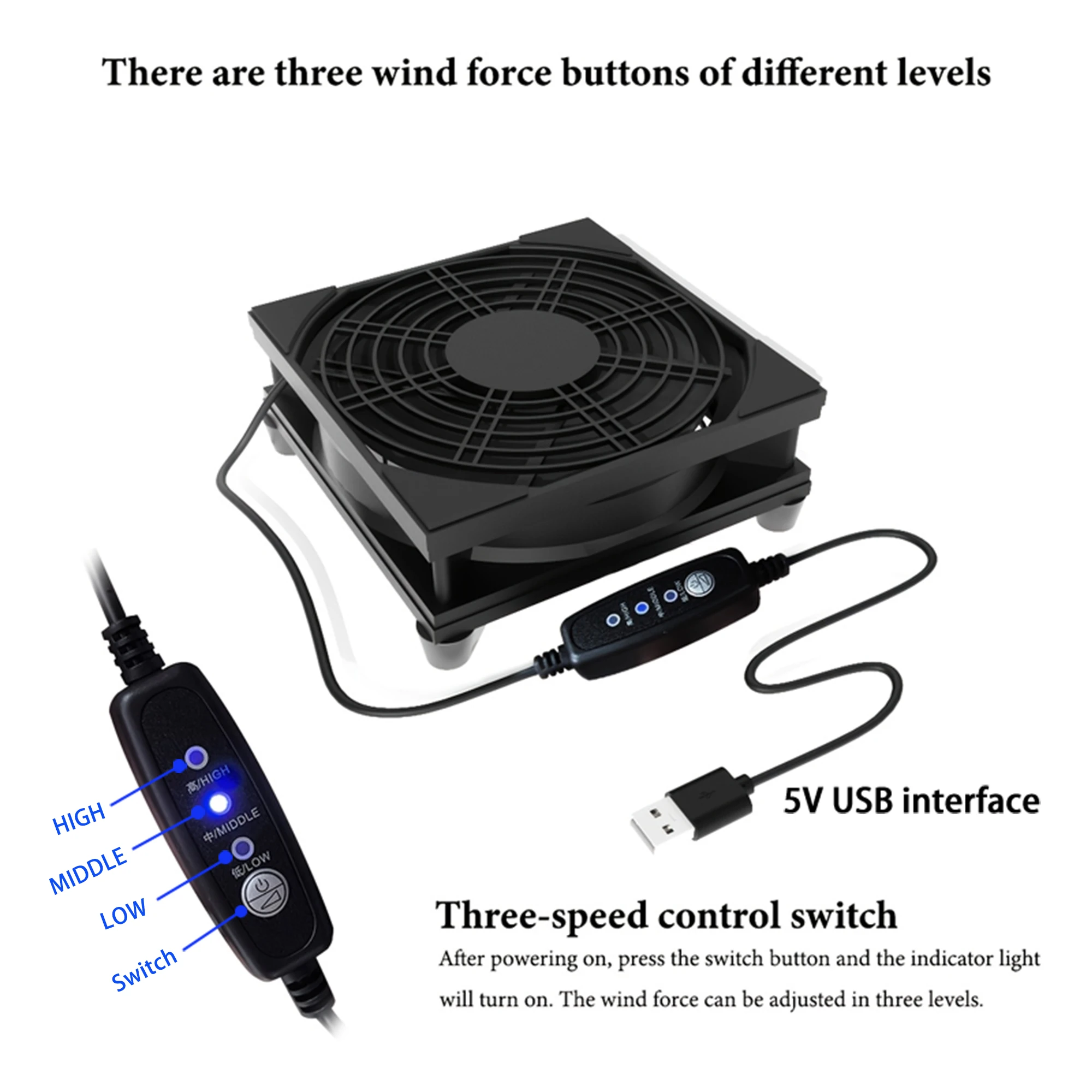 This USB fan features a 3-speed adjustment and operates quietly, making it ideal for use in various settings. It is powered by a 5V supply and includes a speed controller for your convenience.