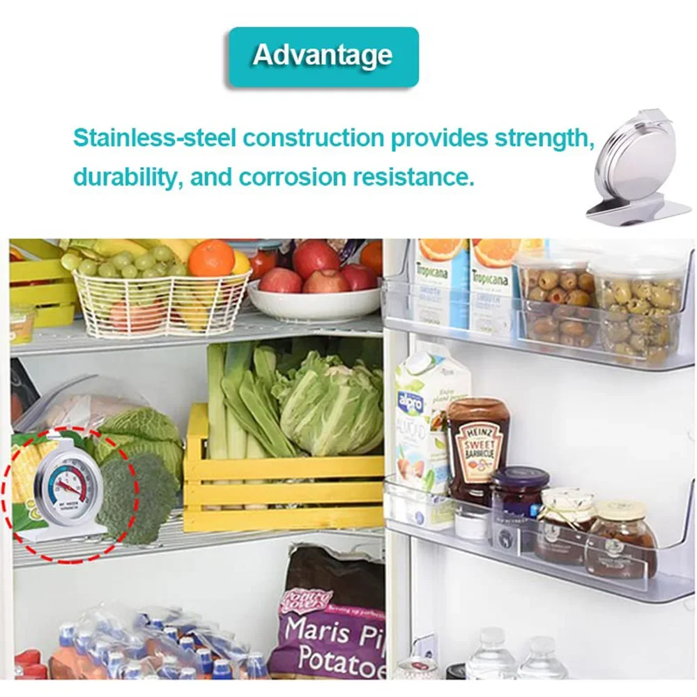 This refrigerator thermometer is designed for accurate temperature measurement in various cooling appliances such as refrigerators, freezers, and insulated boxes. It features a large dial with clear temperature indicators, making it easy to read and monitor the temperature of your food storage.