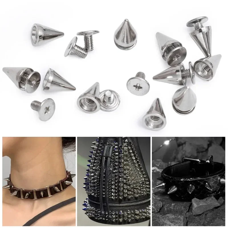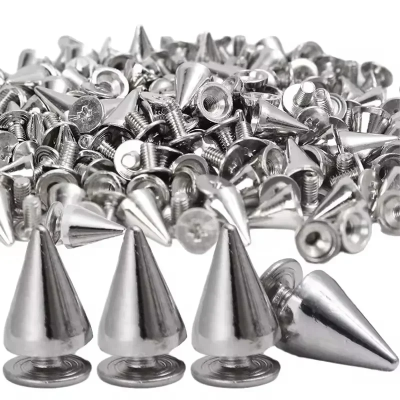 200 Double Caps Silver Rivets Cone Studs Punk Round Cone Spikes for DIY Sewing
