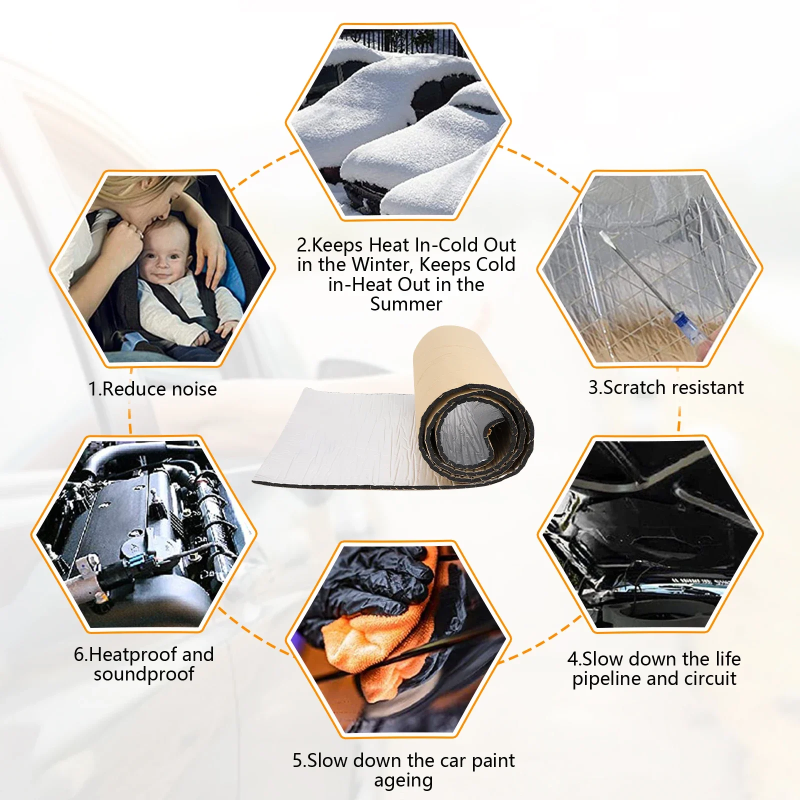 This car sound mat is designed to provide effective soundproofing and thermal insulation for your vehicle. With dimensions of approximately 2000mm x 500mm and thickness options of 5mm or 10mm, it is suitable for various applications within your car, enhancing comfort and reducing noise.