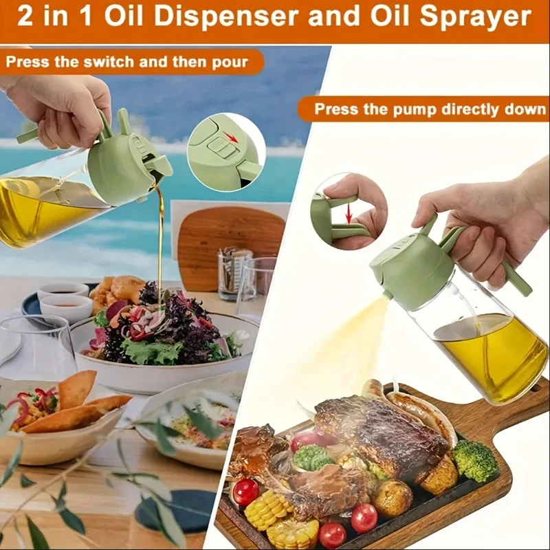 2in1 Glass Oil Spray Kitchen Oils Sprayer for BBQ Air Fryer Salad Steak