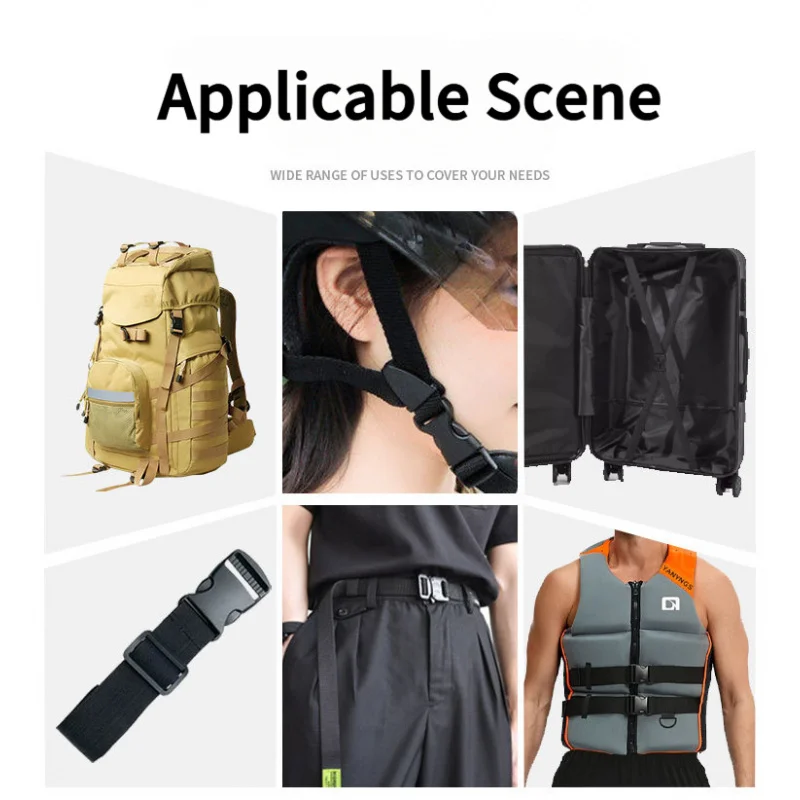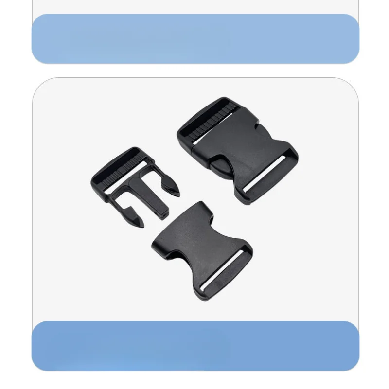 This product includes double adjustable plastic side release buckles, ideal for use with tactical backpacks, waist belts, and straps. The buckles are designed for easy adjustment and secure fastening, making them a practical choice for outdoor activities.