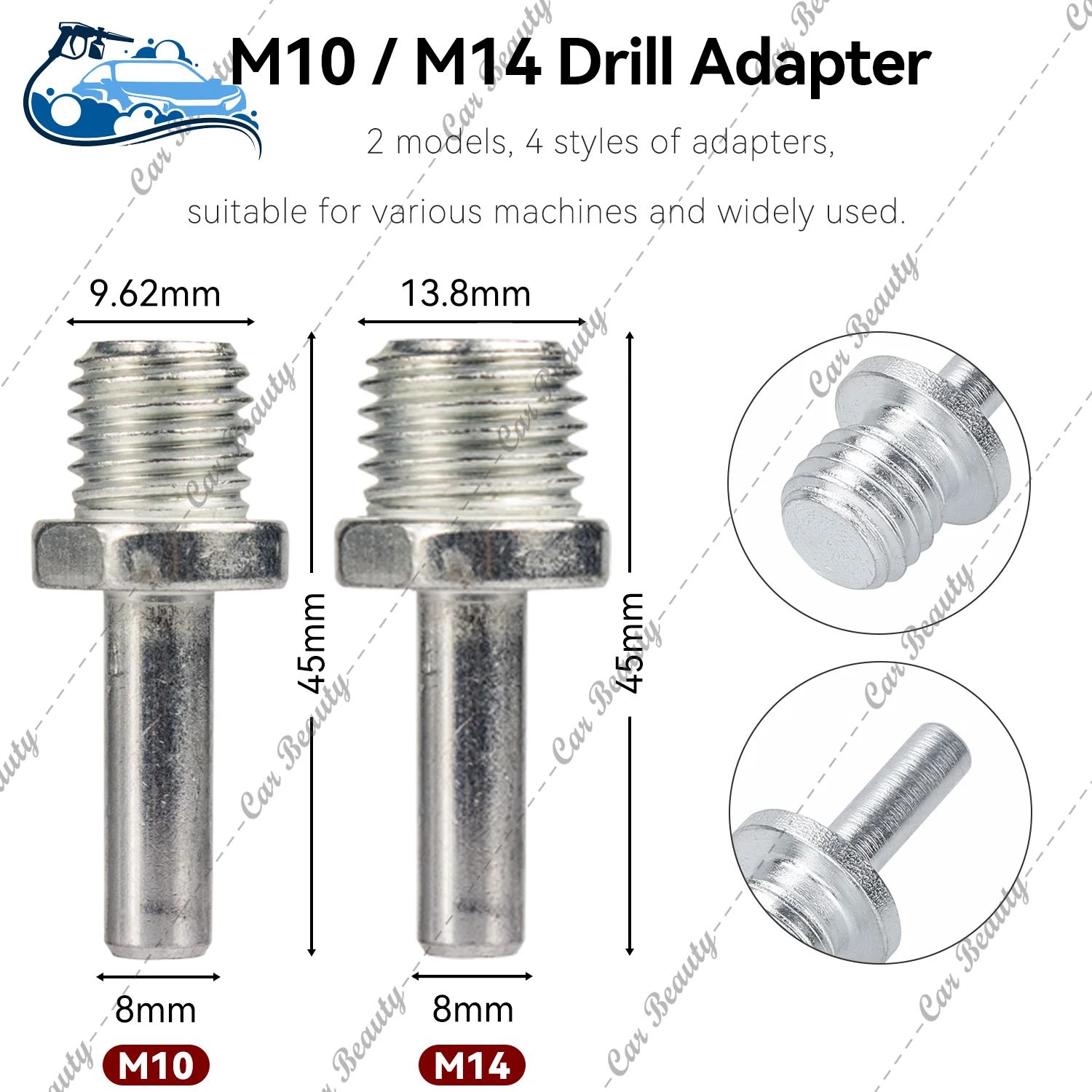 - Comes with M10 and M14 drill adapters for compatibility with different pad sizes.