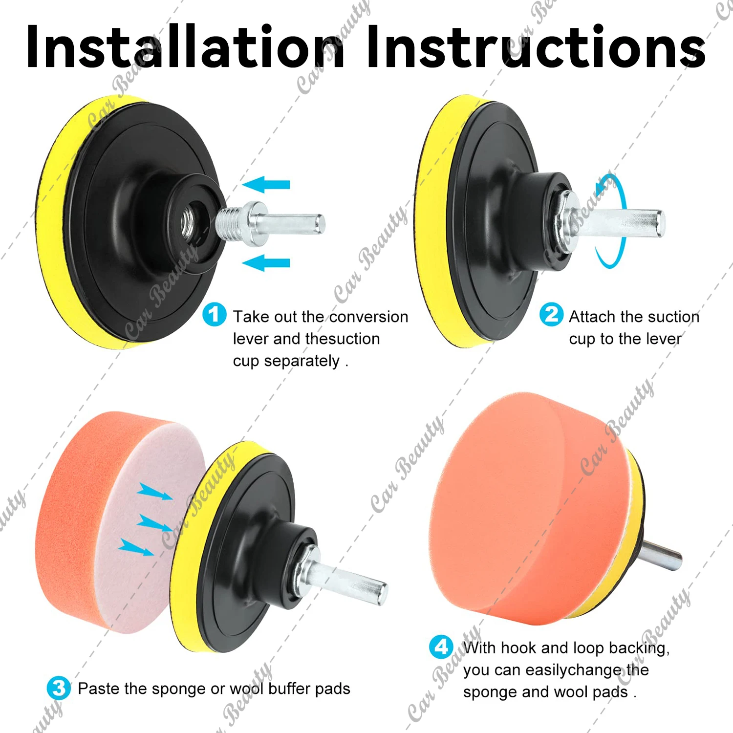 Car Polishing Pad Kit with M10 M14 Drill Adapter for Auto Headlight Polishing