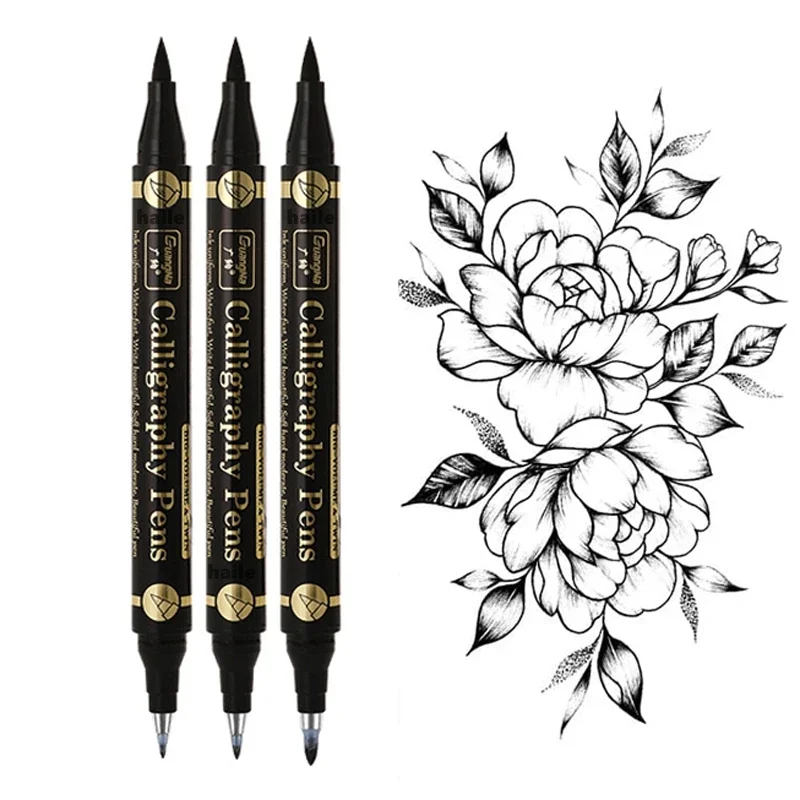 Double Head Multifunction Brush Pen Black Ink Calligraphy Brush Pens Set