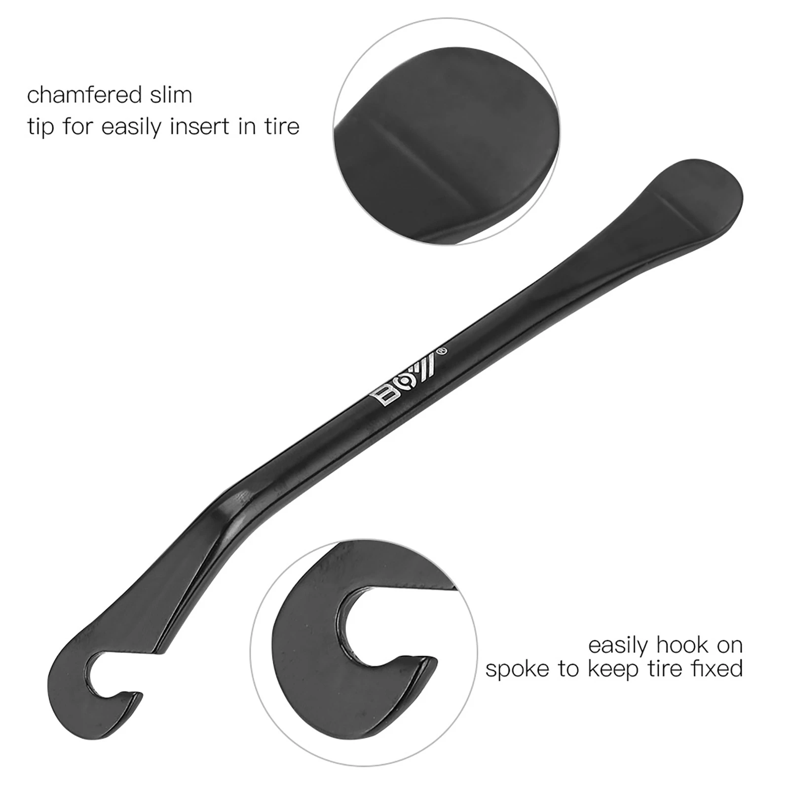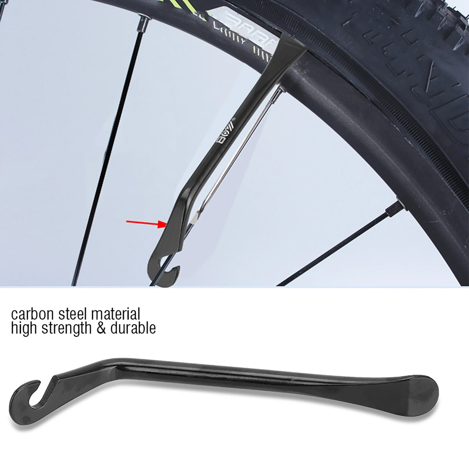 This set of 3 bicycle tire levers is designed for easy tire removal and installation, making it an essential tool for cyclists. Crafted from durable carbon steel, these levers are built to withstand the rigors of outdoor cycling and provide reliable performance.