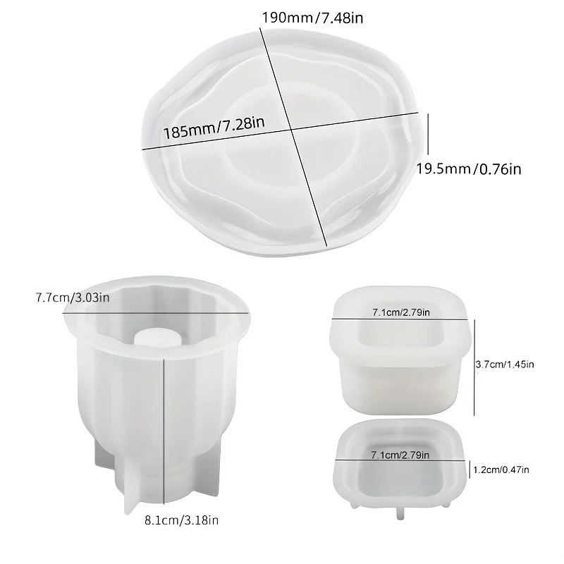 This set includes 3 silicone molds designed for creating unique storage boxes, trays, and candle holders. Perfect for DIY enthusiasts, these molds allow you to craft with epoxy resin, plaster, concrete, and more, adding a personal touch to your home decor.