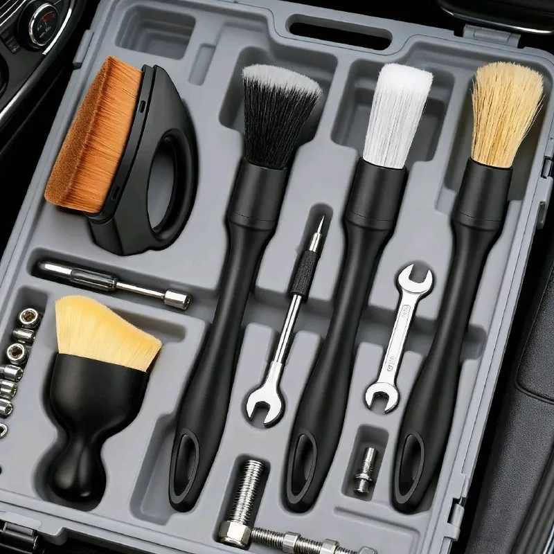 This Car Detailing Brush Set is designed for cleaning hard-to-reach areas in your vehicle, such as air conditioning vents and crevices. It is an essential tool for maintaining the interior of your car, ensuring that dust and dirt are effectively removed.