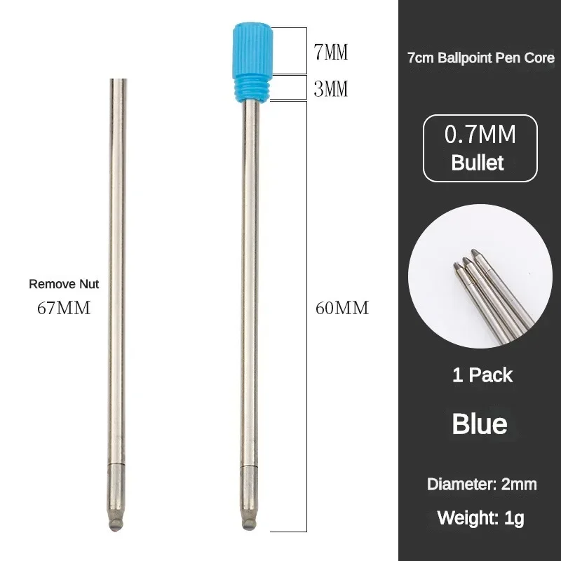 70mm Crystal Pen Refill Short Leads Blue Black Metal Ballpoint Pen Refill