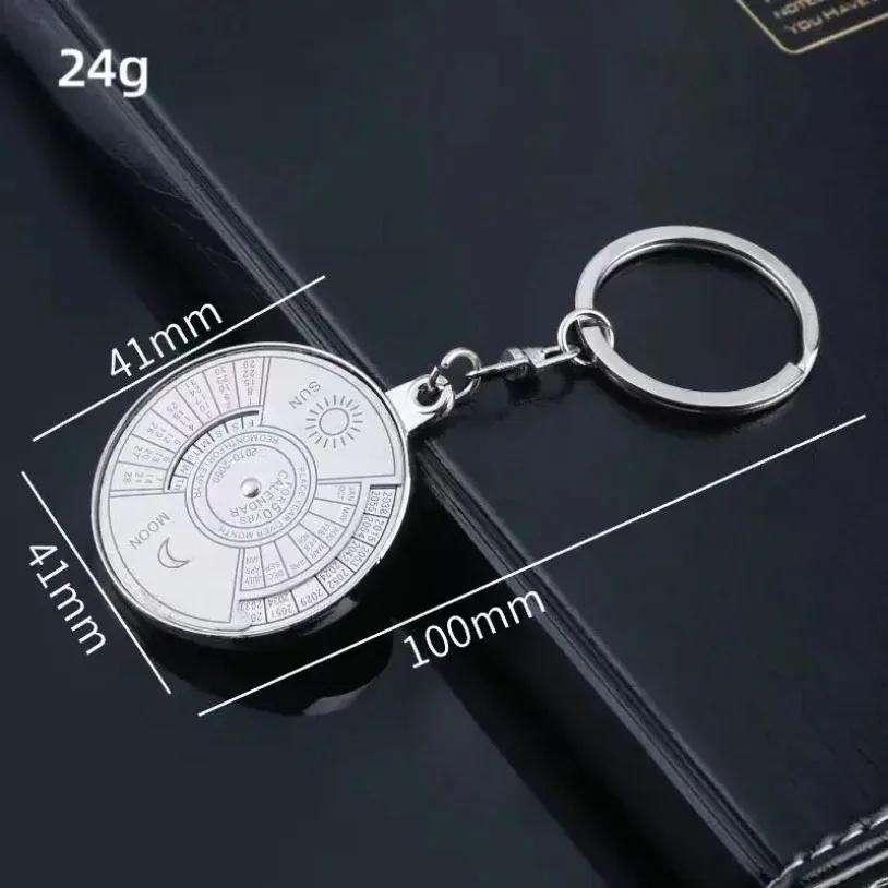 50 Years Perpetual Calendar Multifunctional Keychain Metal Keyring Silver