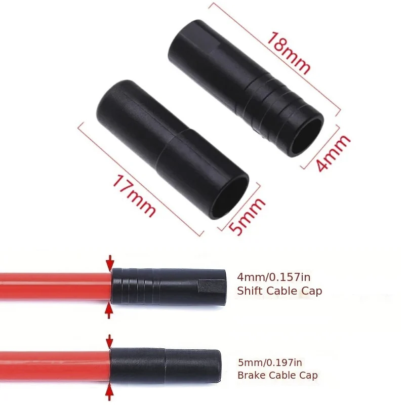 The Bicycle Cable End Cap is designed to protect the ends of your brake and shift cables, ensuring durability and performance for your bike. Suitable for both 4mm shift cables and 5mm brake cables, these caps are essential for maintaining the integrity of your bike’s cable system.