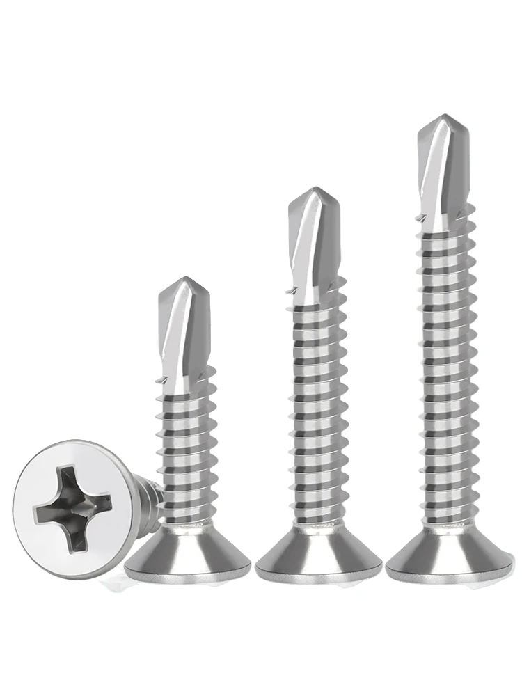 50PCS #8 M4.2 410 Sheet Metal Self-Tapping Screws 410 Stainless Steel Flat Head