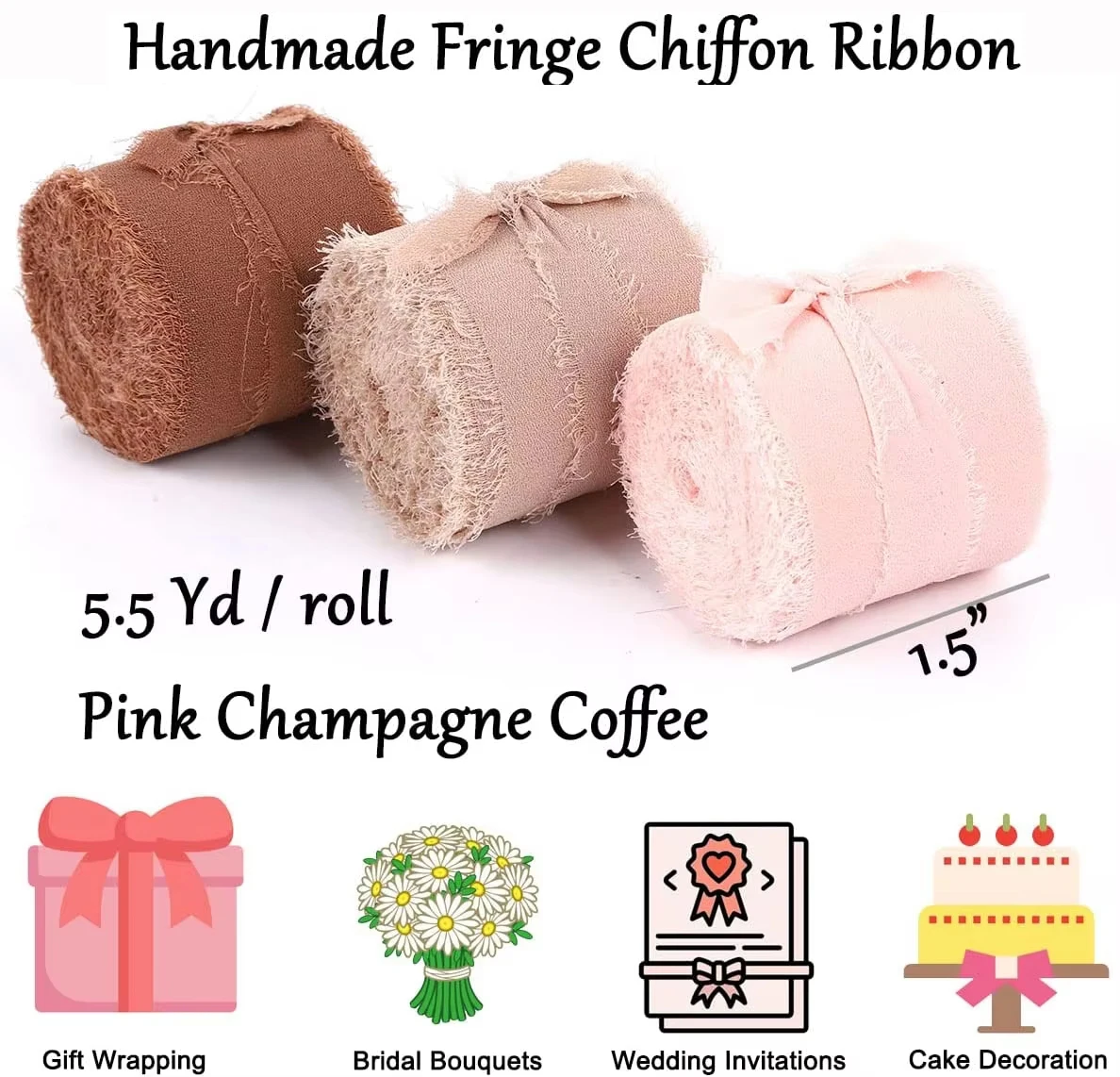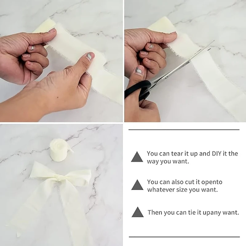 This frayed silk ribbon is perfect for adding a touch of elegance to your wedding, party, or DIY craft projects. With a width of approximately 4 cm and a length of 5 meters, it is versatile for various decorative uses, including flower bouquets and gift packing.