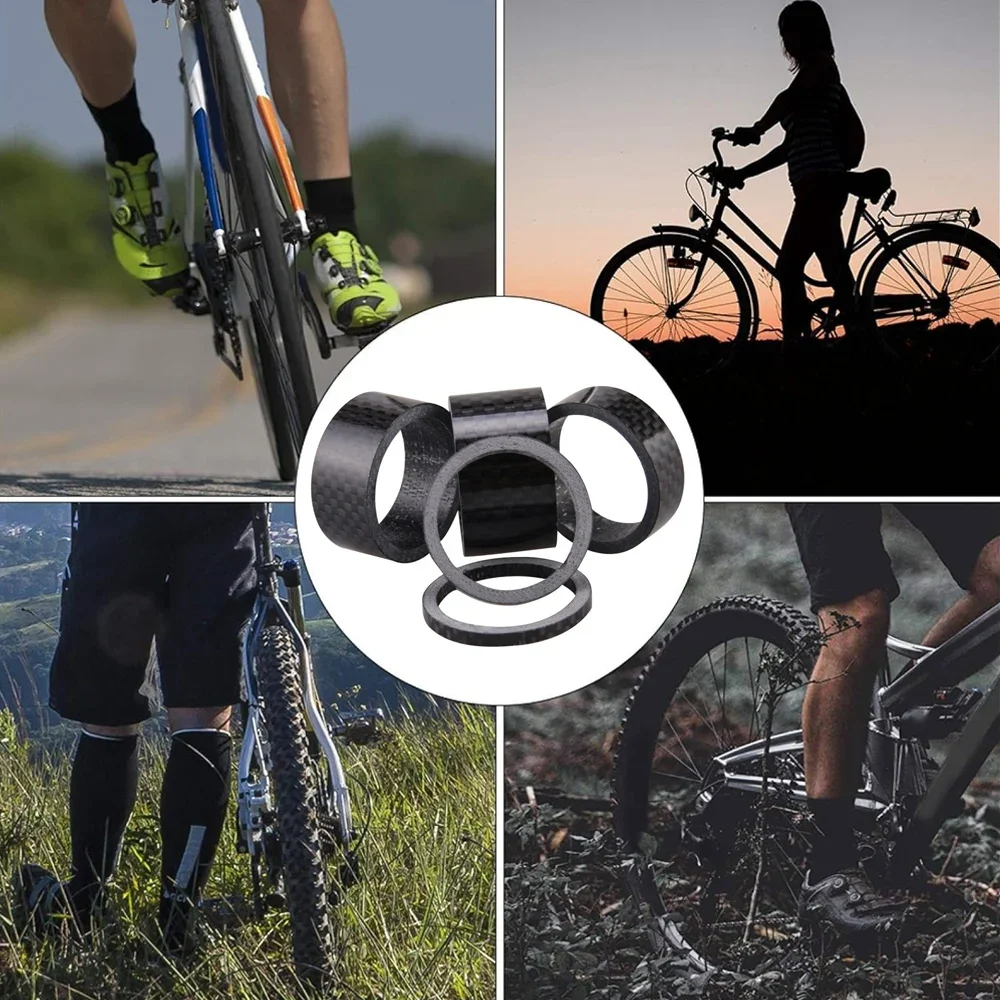 The Bicycle Carbon Fiber Spacer set includes various sizes to accommodate different mountain bike headset needs. This set is designed to enhance your biking experience by providing reliable and adjustable spacers for your bike’s fork tube.