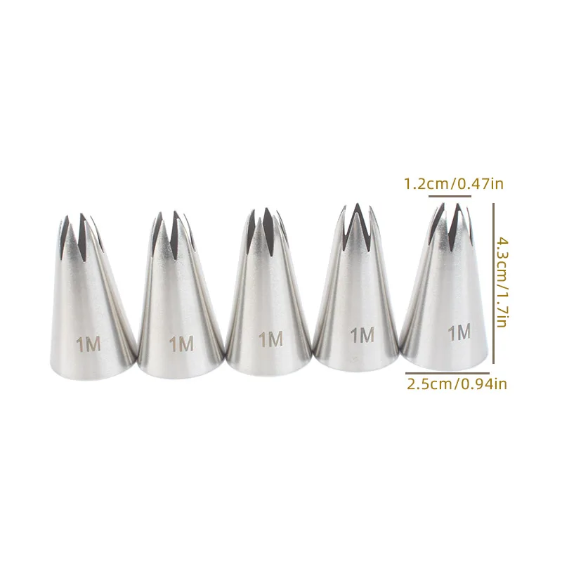 This 5pcs Piping Nozzles Set is designed for creating beautiful icing decorations on cakes, cupcakes, and other desserts. Made from durable stainless steel, these nozzles are perfect for both professional bakers and home baking enthusiasts.