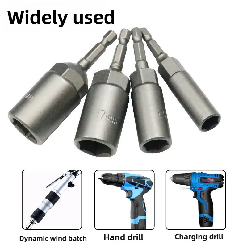 80mm Length Deepen Power Nut Driver Drill Bit Set 5.5-19MM Impact Socket Adapter