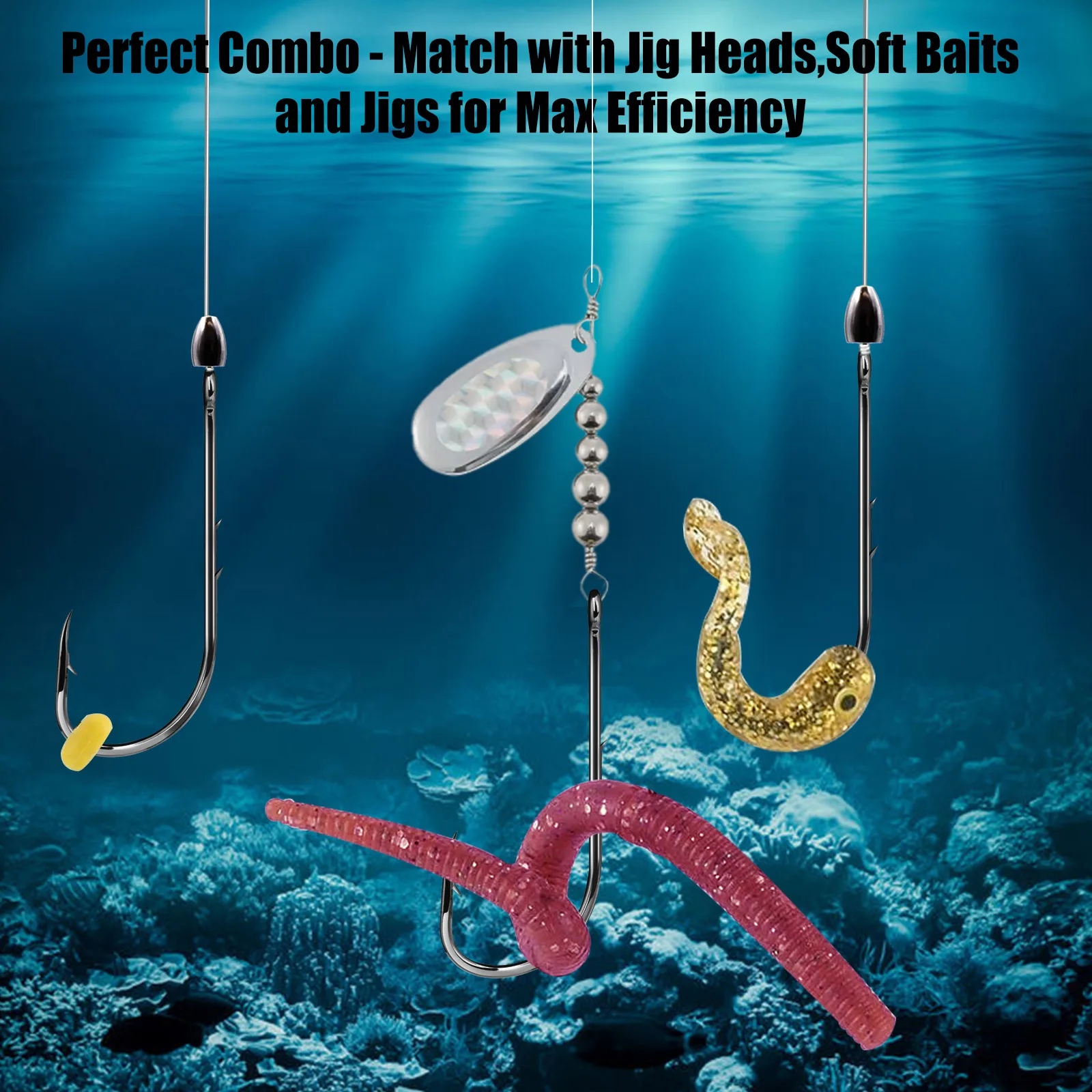 - Longer shank for versatility with different bait types