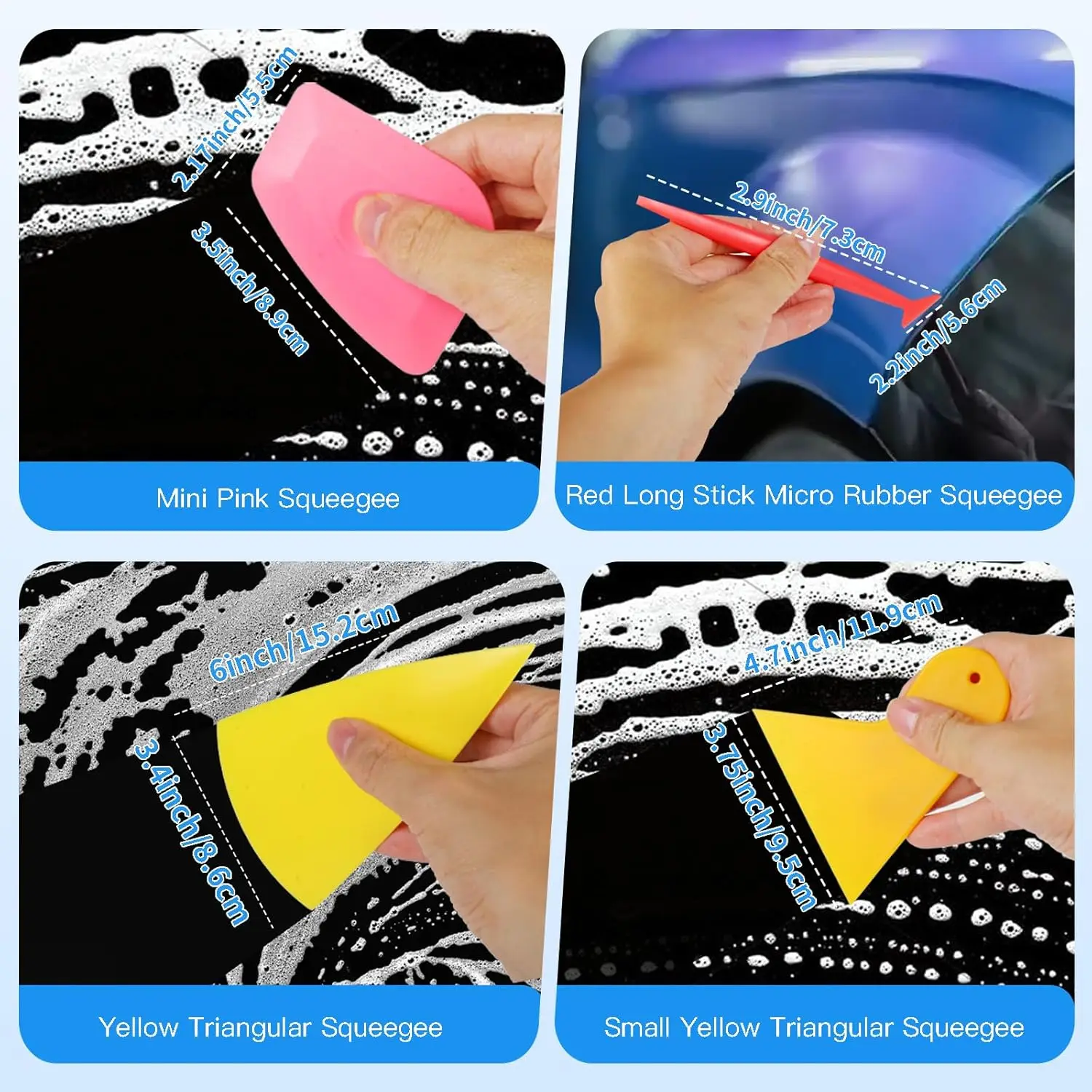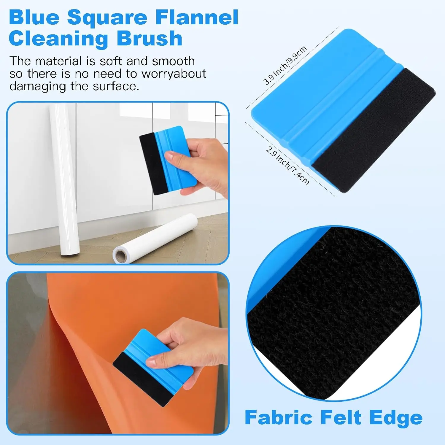 - Felt squeegee: The 4-inch felt edge squeegee helps to smooth out vinyl wraps and remove air bubbles without scratching the surface.