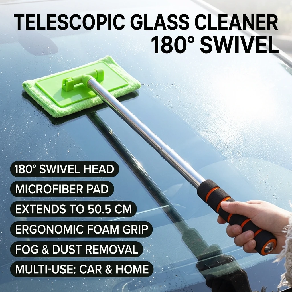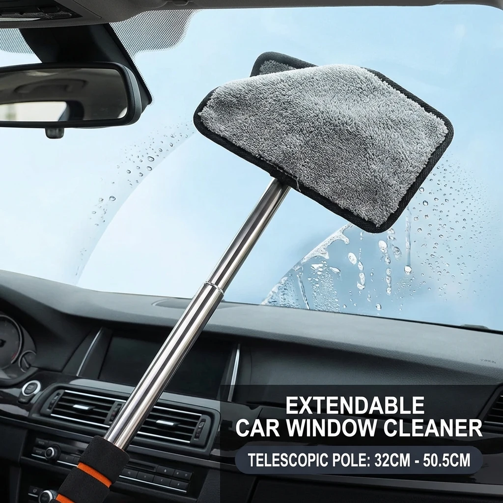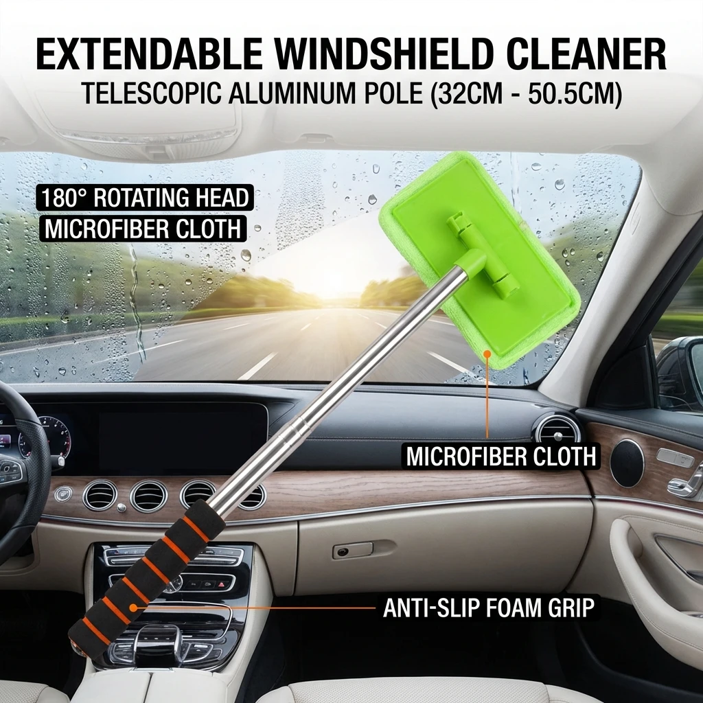 - Adjustable Aluminum Pole: Extends from approximately 32 cm to 50.5 cm, allowing you to reach high windows and the center of your windshield comfortably.