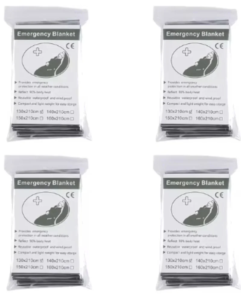 - FOUR PREMIUM MYLAR EMERGENCY BLANKETS – Retains up to 90% of body heat, ensuring warmth during cold nights.