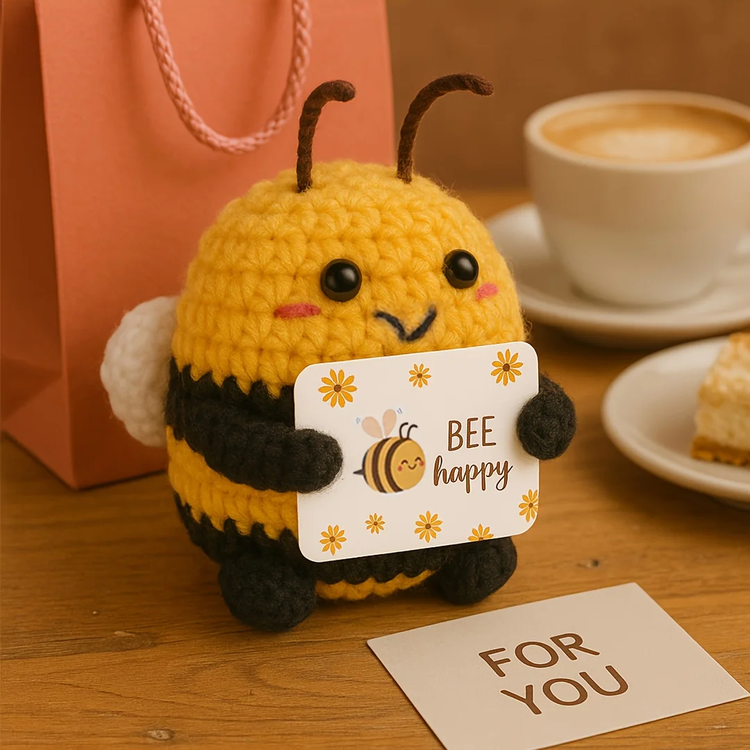 DIY Hand-Knit Positive Bee Energy Doll for Keychains Bags or Home Decor