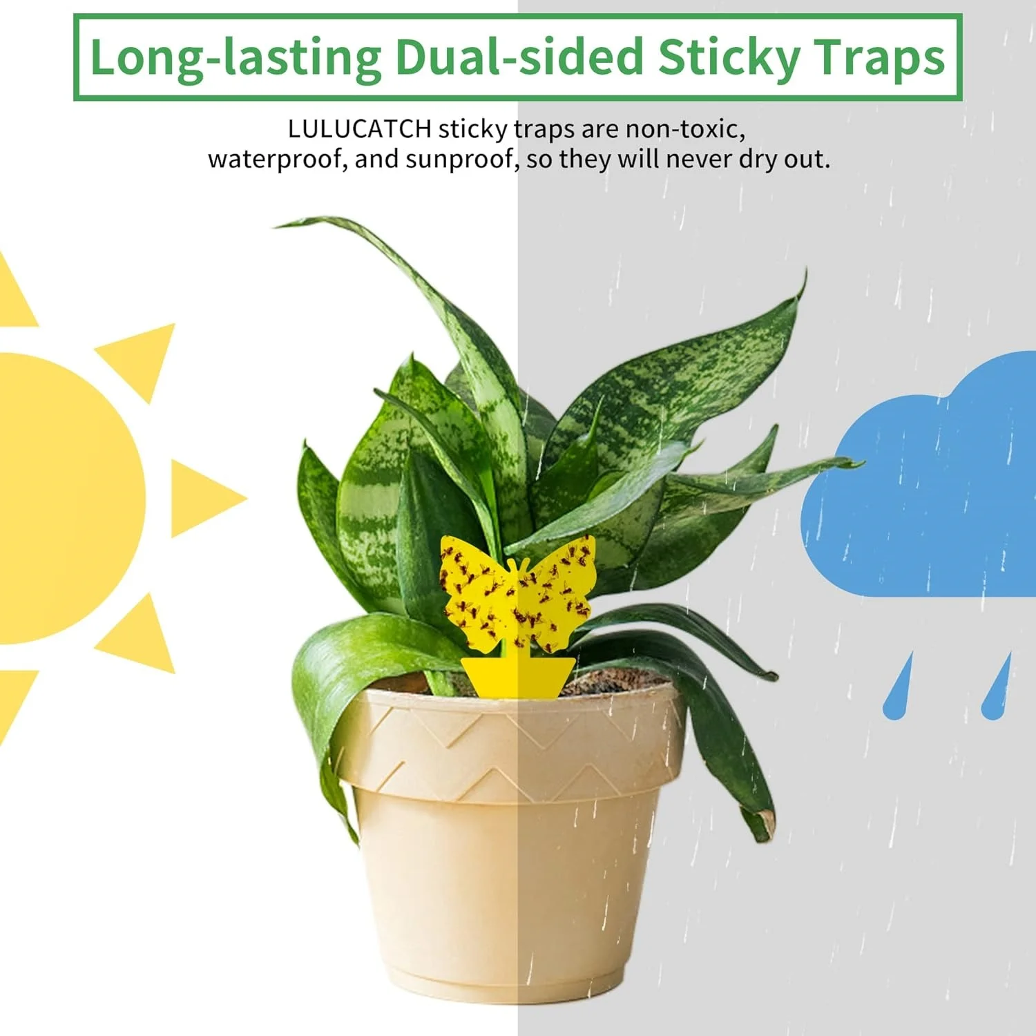 • Long-lasting design with UV resistance and waterproof properties, allowing for extended use until fully covered with insects.