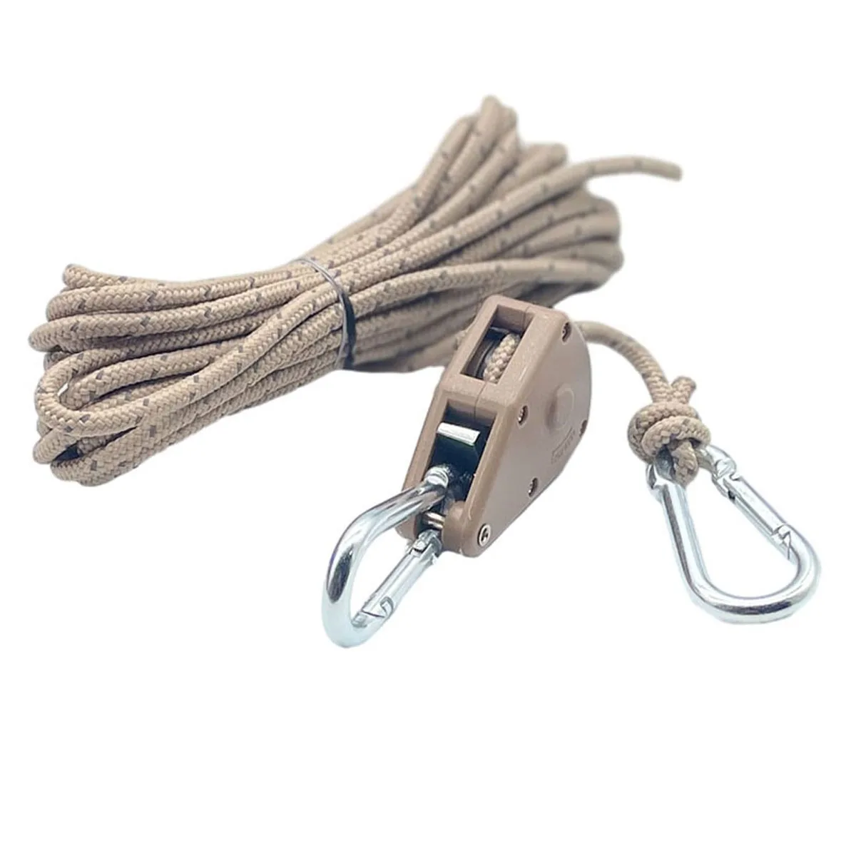 This multi-functional quick tightening pulley is designed for outdoor activities such as camping. It allows you to securely fasten tents and bundle items efficiently using a tightening rope.