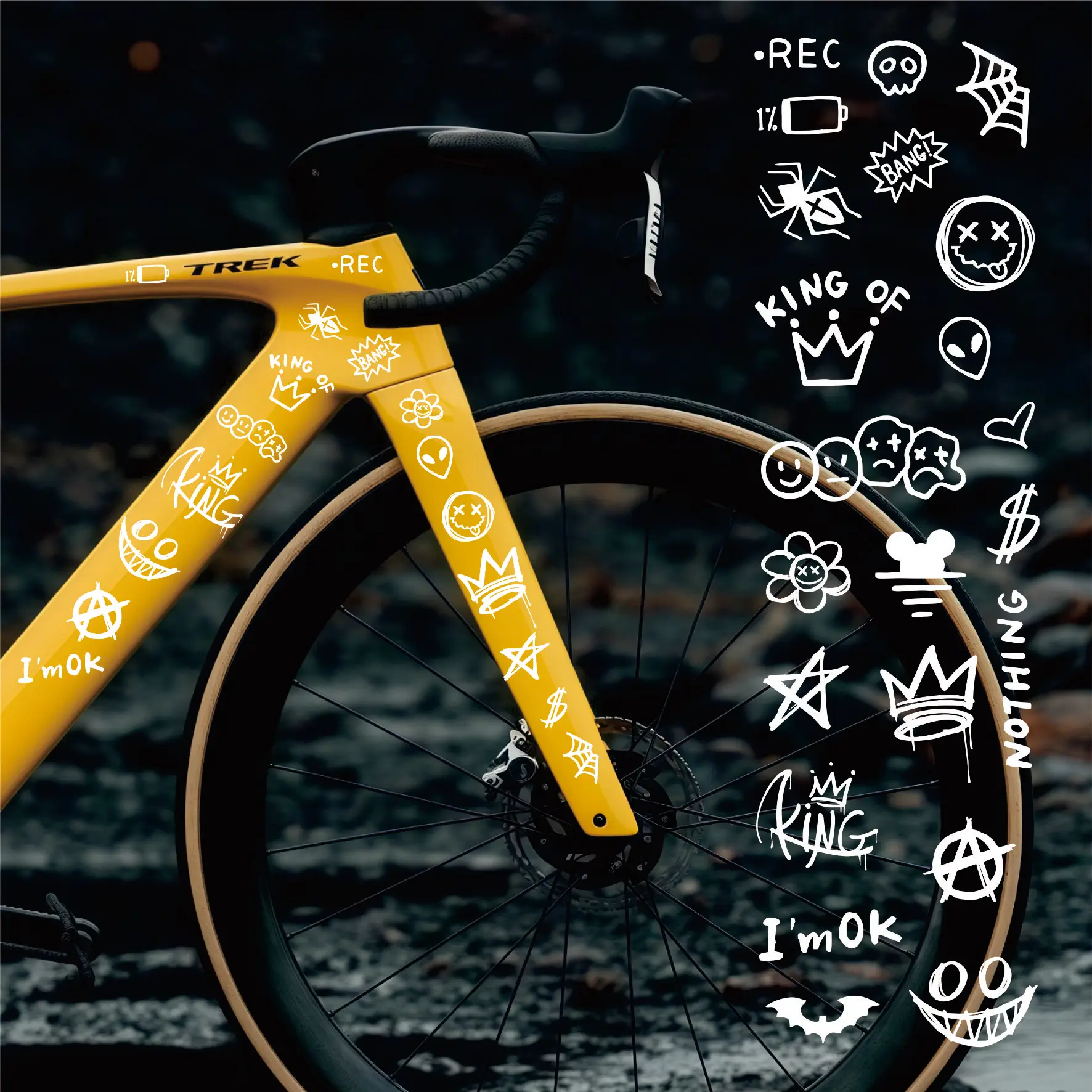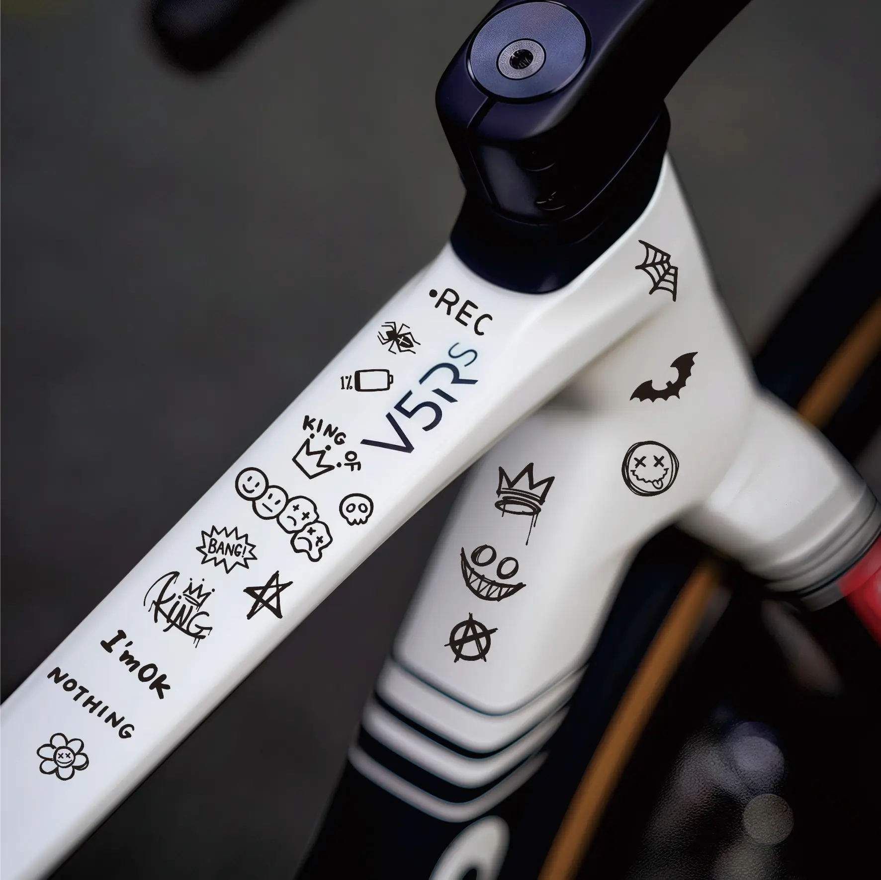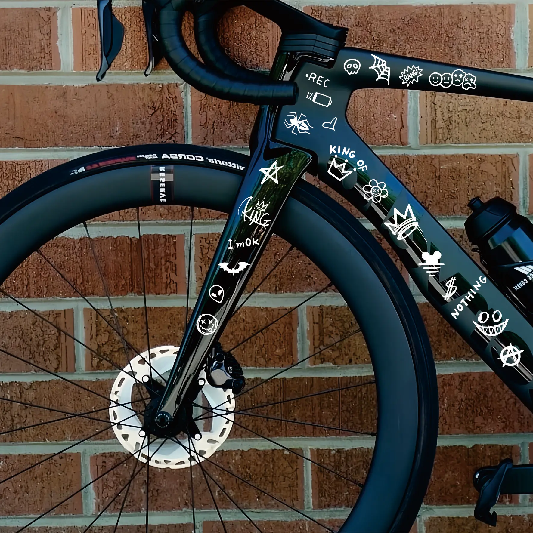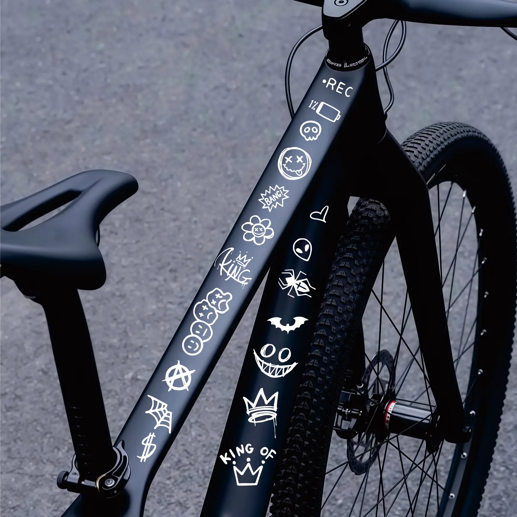 Enhance your bicycle’s appearance with these fun and vibrant graffiti stickers. Designed for the top tube of your bike frame, these cartoon-style stickers are perfect for DIY enthusiasts looking to personalize their ride. The stickers are reflective and waterproof, ensuring they withstand the elements while adding a unique touch to your cycling experience.