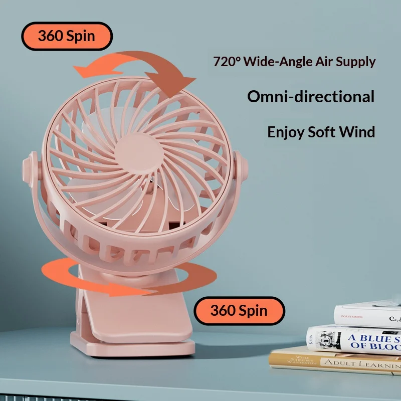 Portable Rechargeable Clip Fan 720 Rotatable Hanging Fan with Night Light
