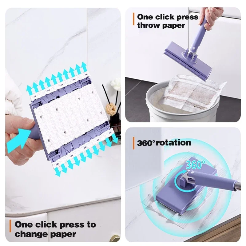 This hands-free mini mop is designed for effortless cleaning of various surfaces, including floors and windows. With its innovative 360° rotation feature, it allows you to reach every corner without bending or straining your back. The automatic towel replacement mechanism ensures a clean mop head every time, making your cleaning routine more efficient.