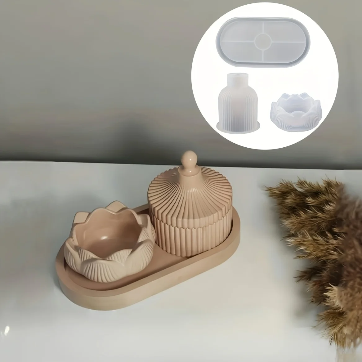 Lotus Striped Vase Tray Silicone Mold Set DIY Epoxy Resin Plaster Mold