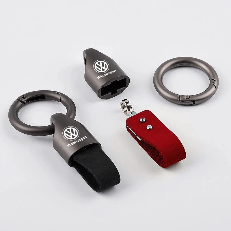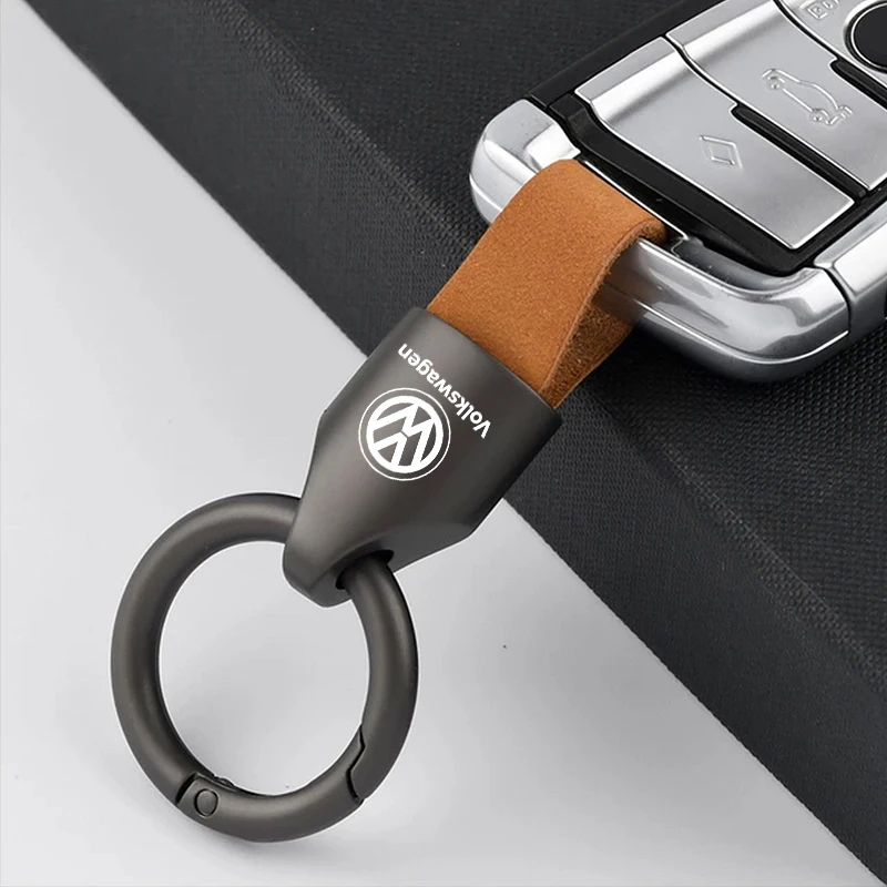 This keychain is a stylish accessory designed for Volkswagen enthusiasts. It features a combination of suede and zinc alloy, providing a unique look and feel. Perfect for keeping your keys organized while showcasing your love for VW vehicles.
