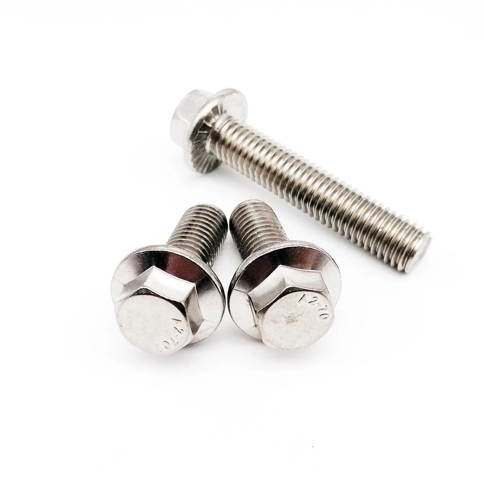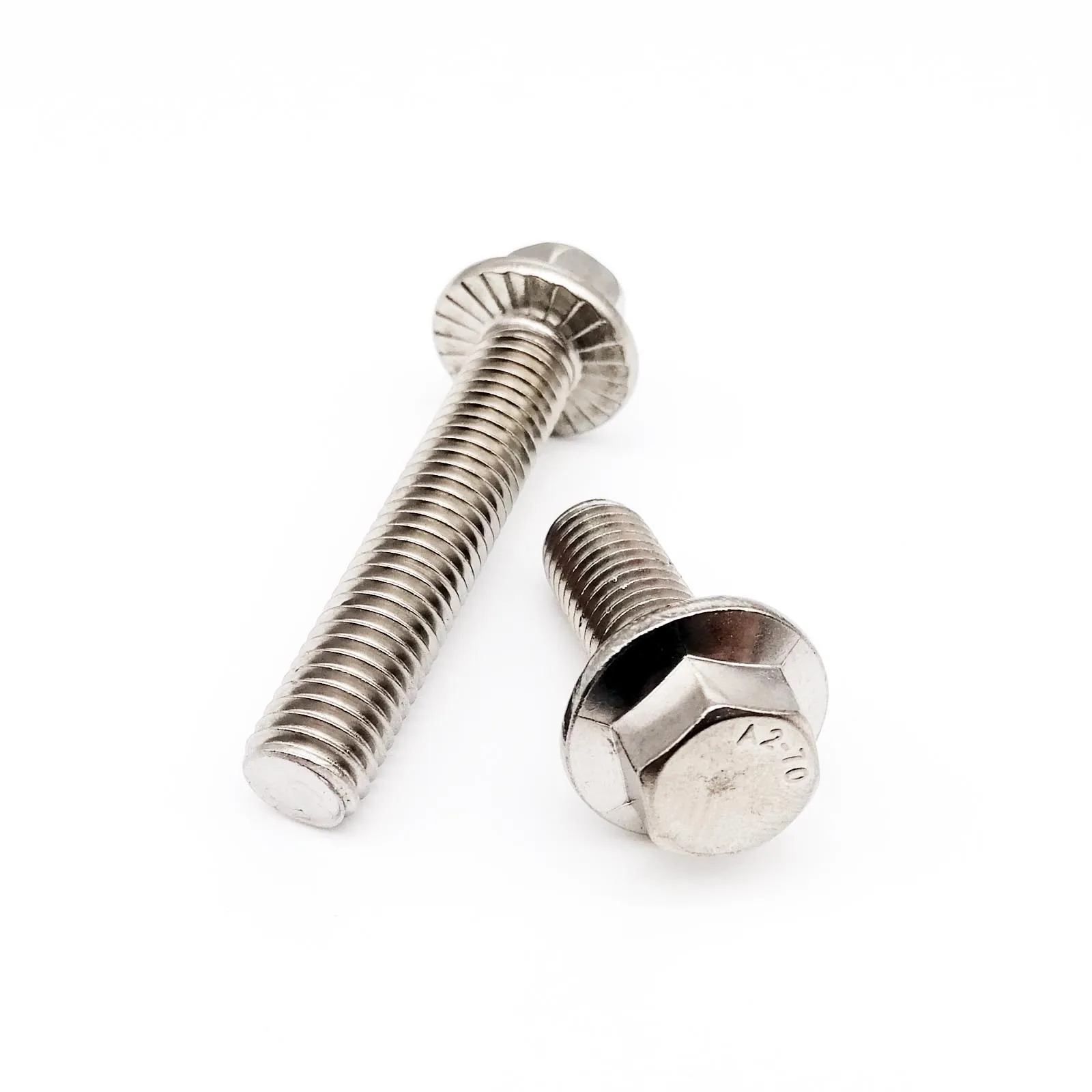 This product features hexagon head bolts with a serrated flange cap, designed for various applications in woodworking and construction. Made from durable 304 stainless steel, these bolts provide reliable performance and strength.