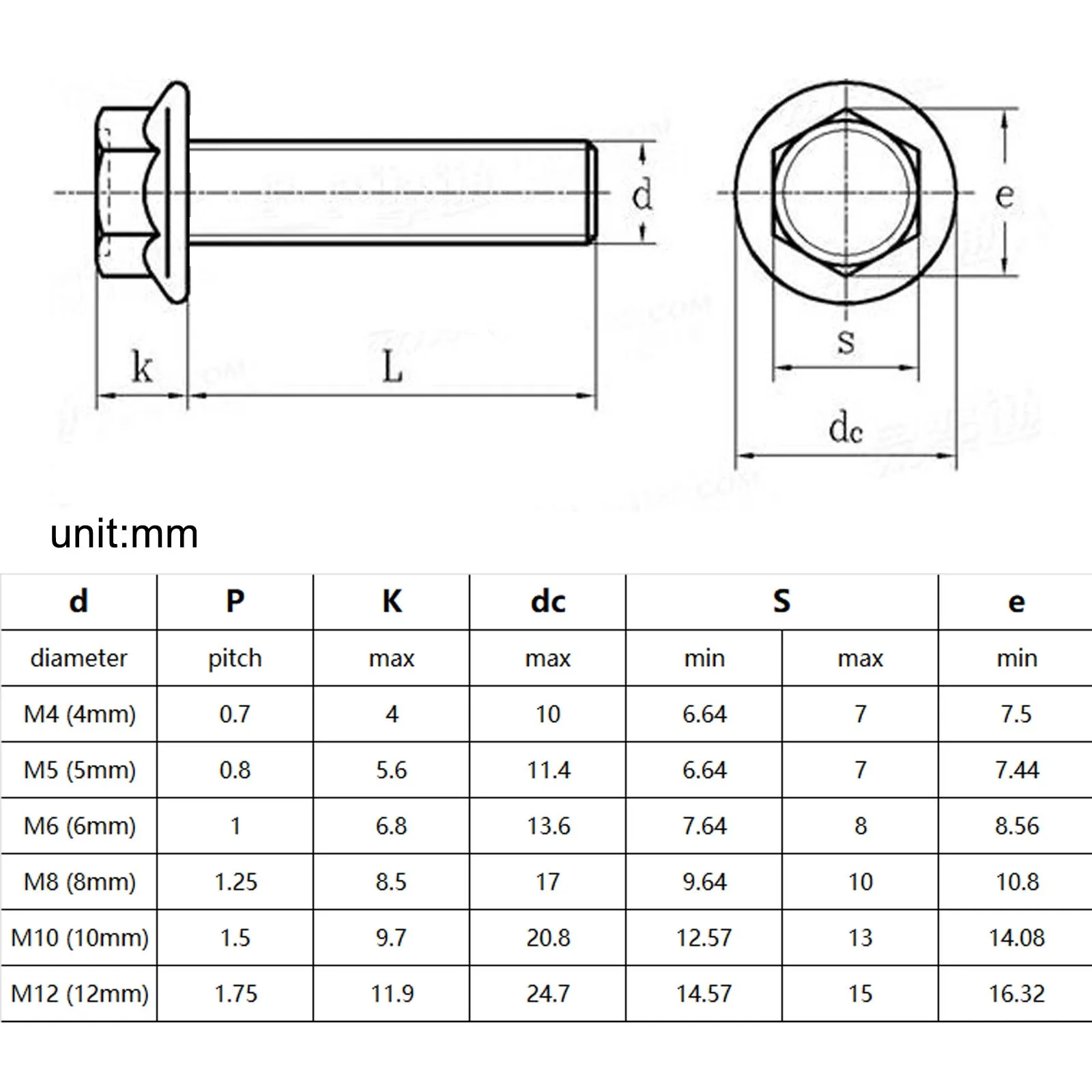 • Metric thread diameter options: M5 (5mm), M6 (6mm), M8 (8mm), M10 (10mm), M12 (12mm)