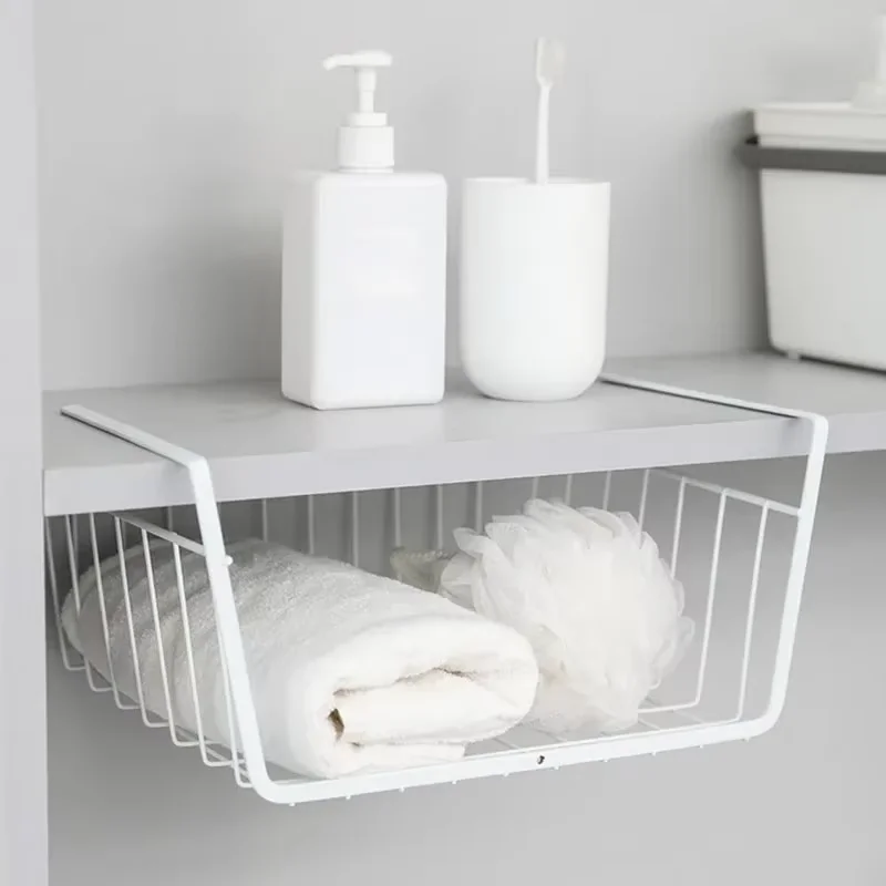 This multi-functional iron bottom hanging basket is designed for versatile storage in your kitchen or bathroom. It helps keep your space organized by providing a convenient way to store small items.