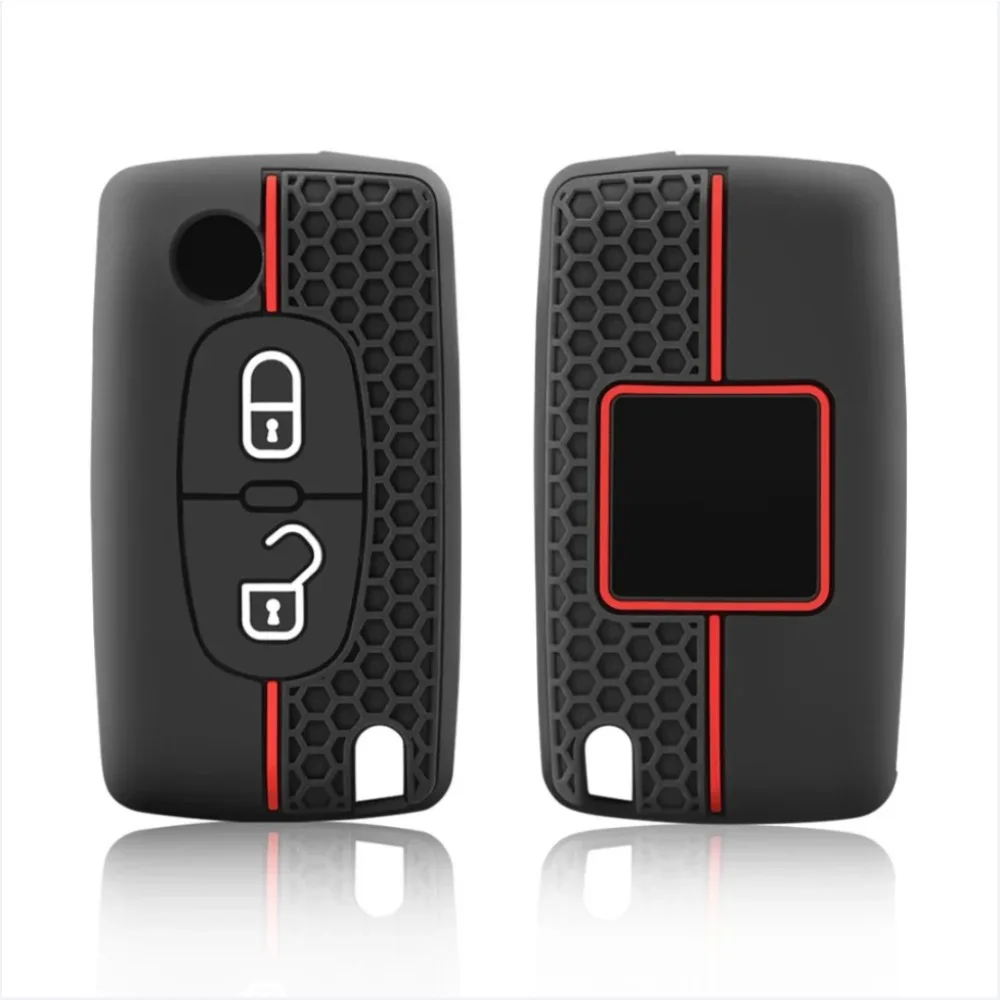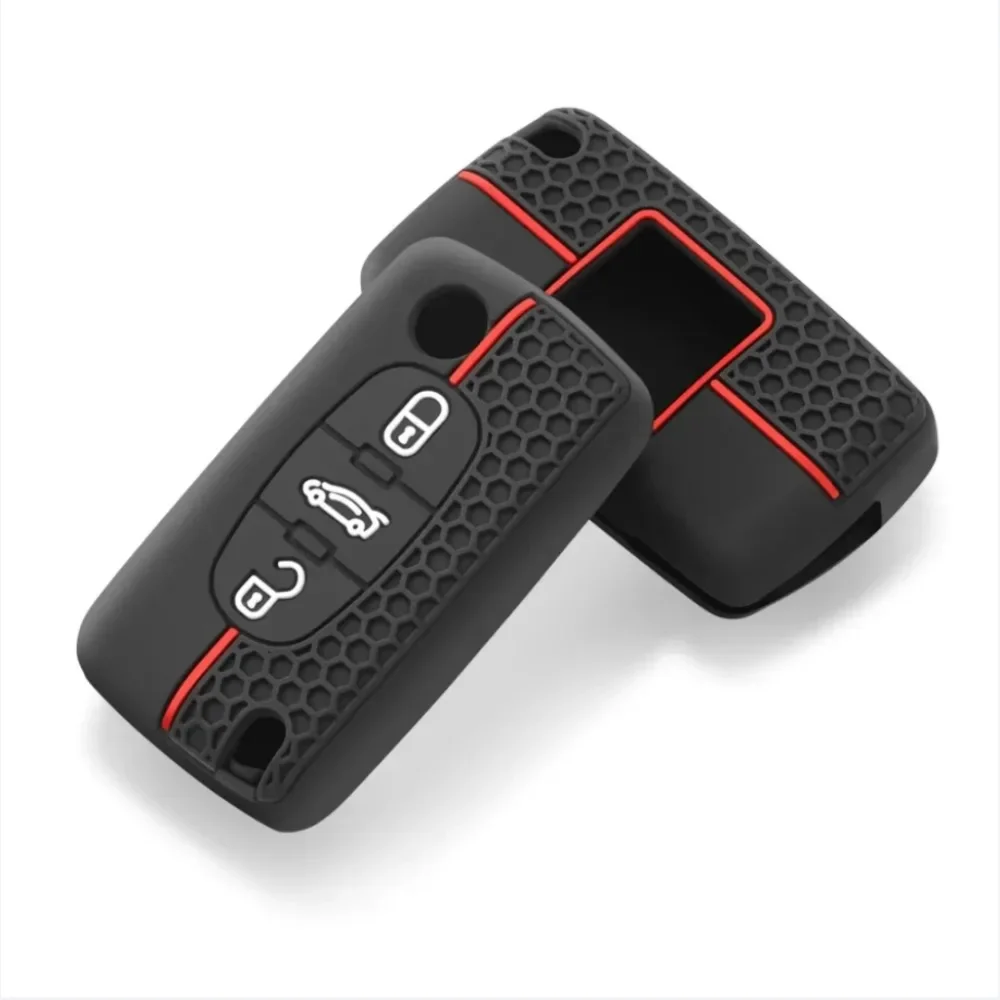 Silicone Car Key Case Cover Keychain Fob Shell for Citroen Peugeot Black